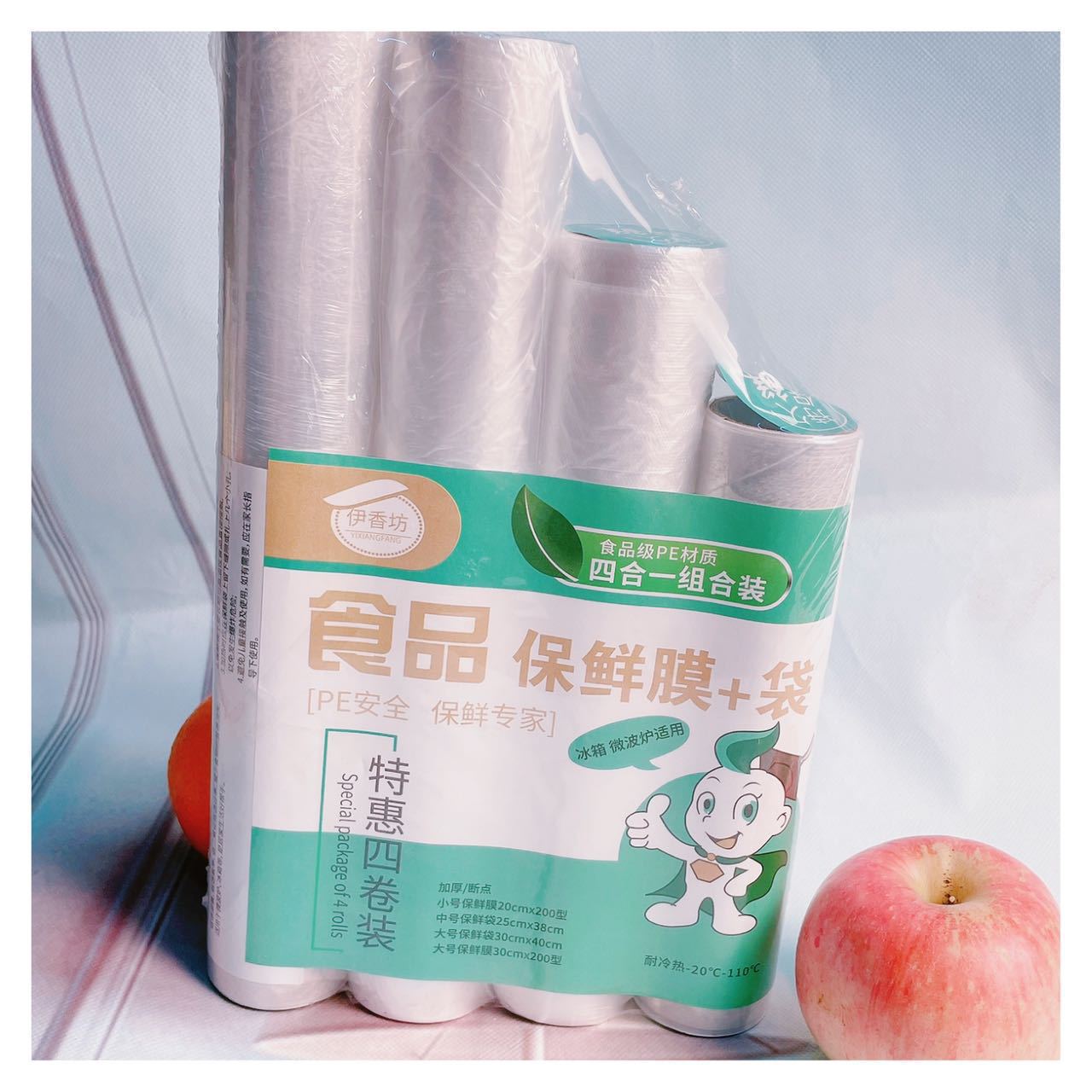 伊香坊食品保存フィルム+袋 経済的な食品グレード4ロール ブレークポイント式 家庭用保存フィルム 卸売