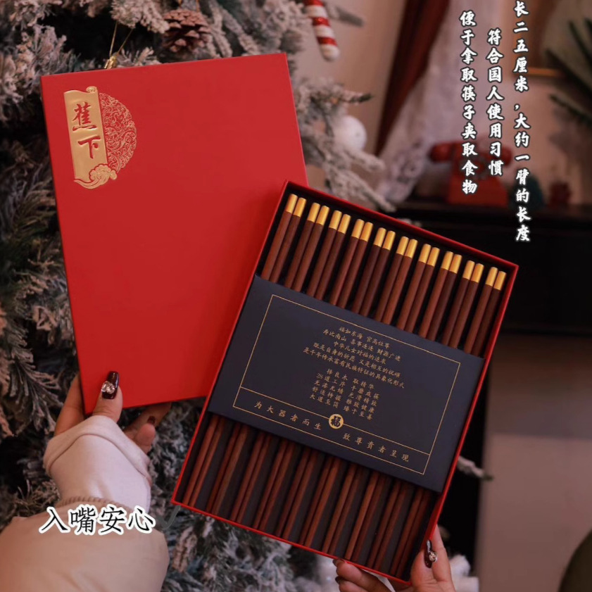 カンナの下で福の箸の赤い木の金の頂の福の字の10双の贈り物の贈り物は菌を防ぎます。
