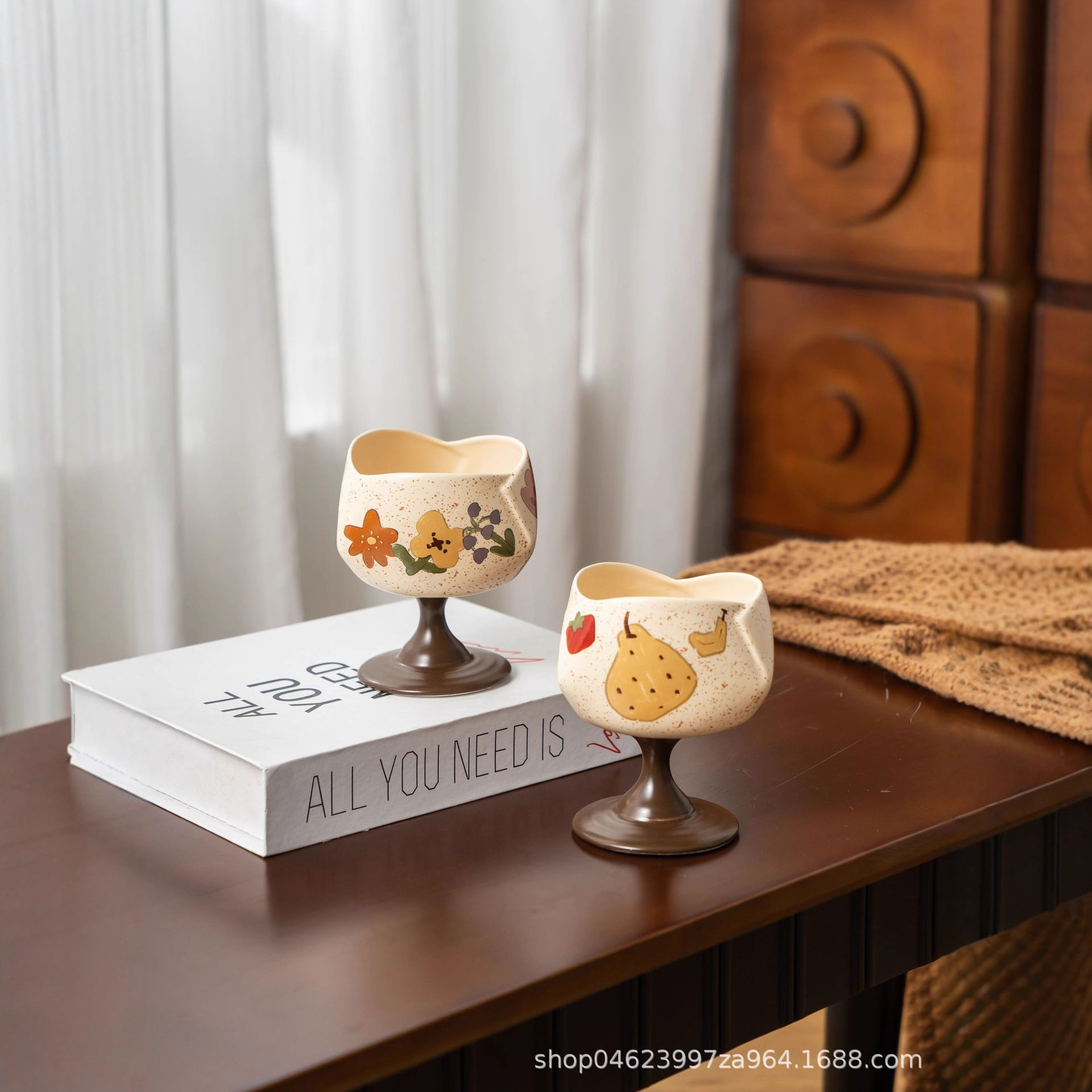 涂鸦手绘风陶瓷杯创意复高脚杯可爱饭碗2025新款家用盘子好看杯子