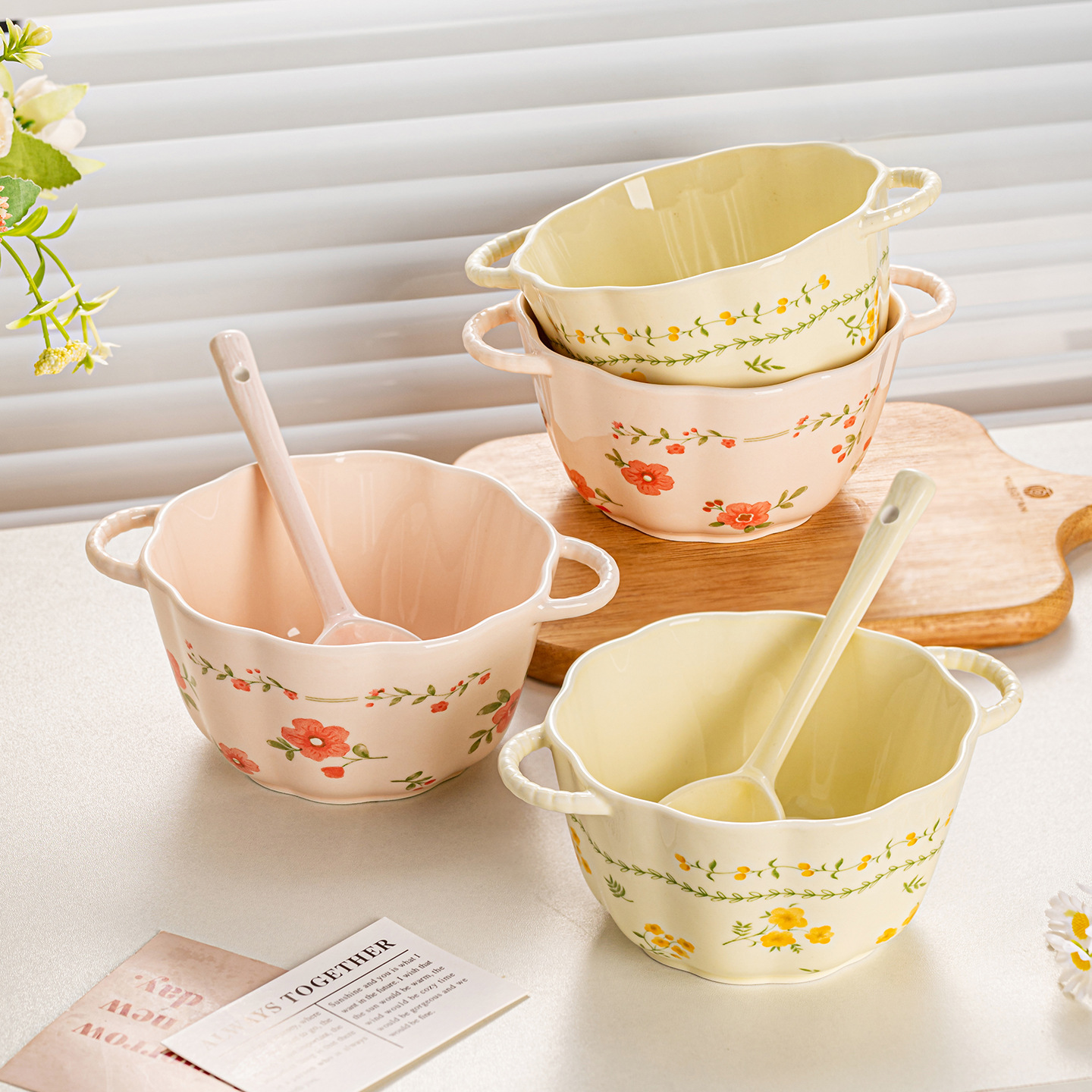 小清新双耳碗酸奶碗新款家用高颜值陶瓷餐具甜品碗沙拉水果碗碗具