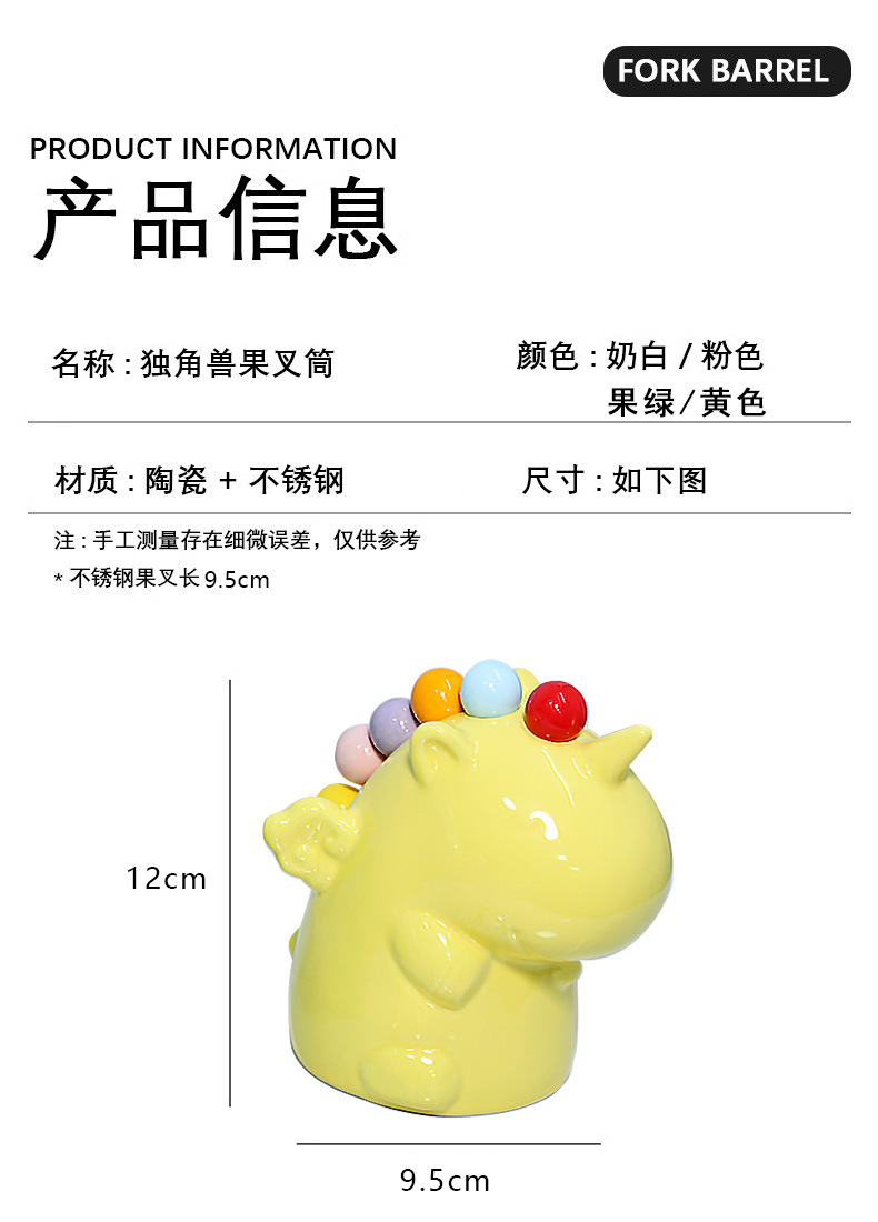 ミルクホワイトユニコーンフルーツフォークジャー+セラミックヘッド304フォーク,ピンクユニコーン フルーツフォークジャー + セラミックヘッド 304 フォーク,フルーツグリーンユニコーンフルーツフォークジャー+セラミックヘッド304フォーク,イエローユニコーン フルーツフォークジャー + セラミックヘッド 304 フォーク