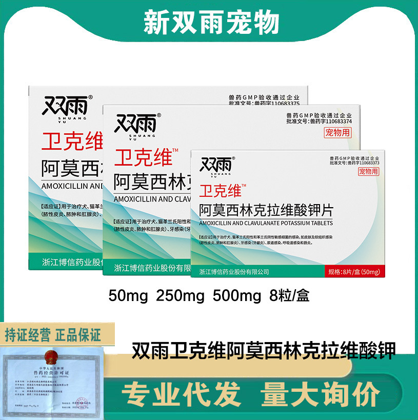 Shuangyu Weikevita タブレット猫鼻支猫と犬の風邪薬アモキシシリン クラビ酸カリウム 50mg 250mg