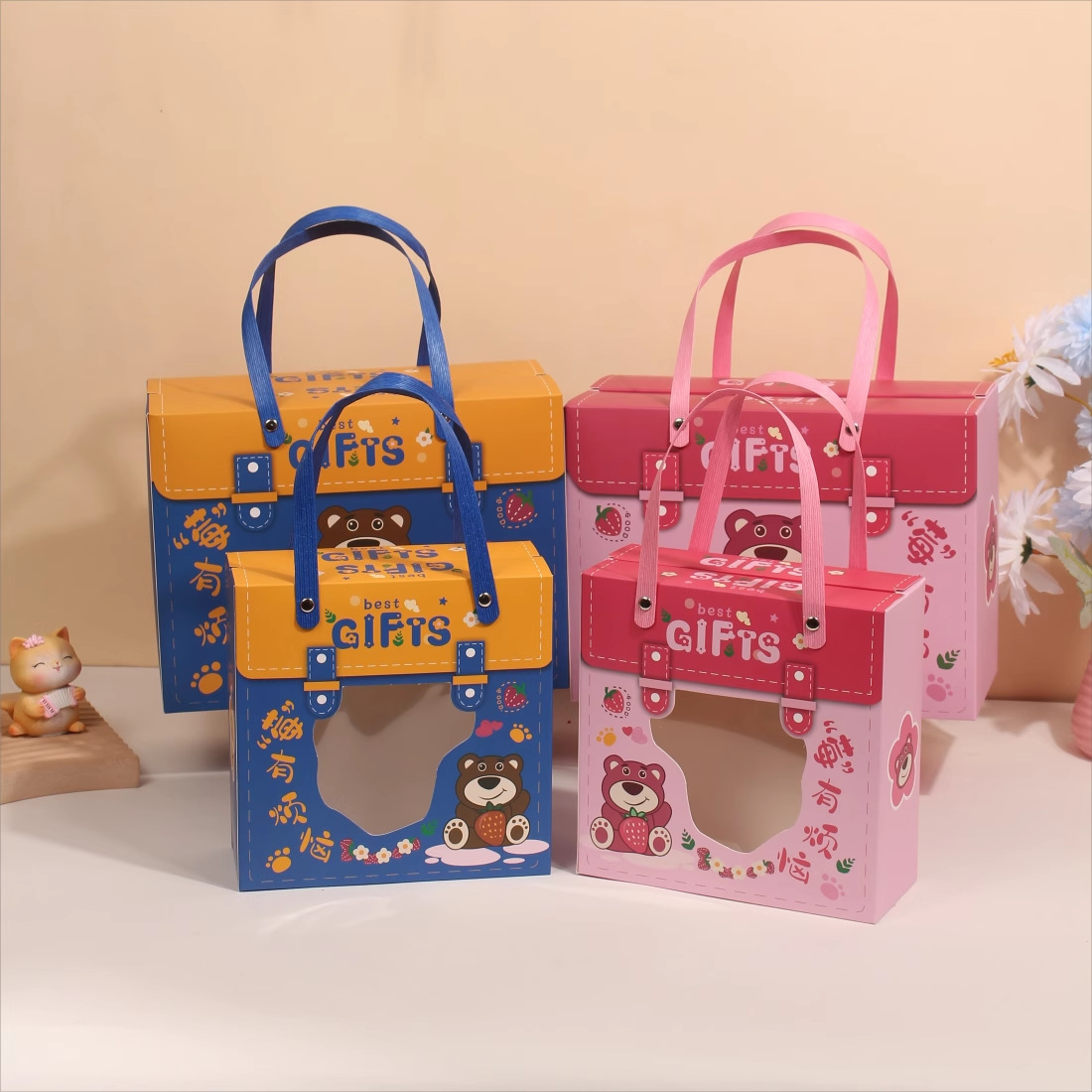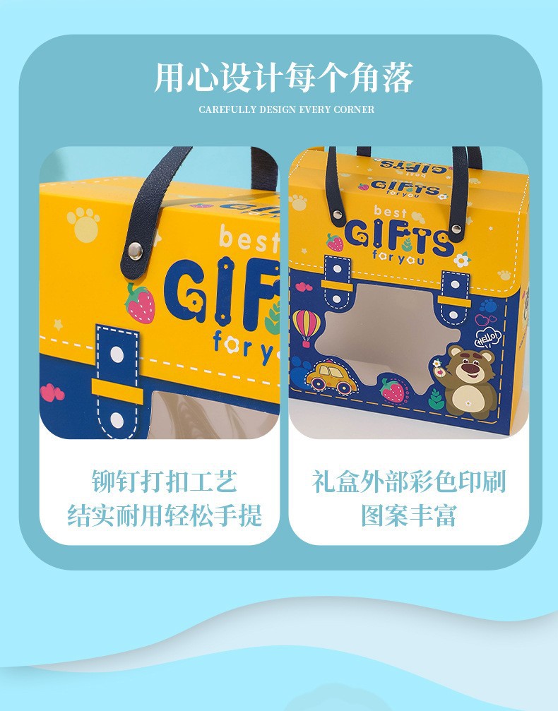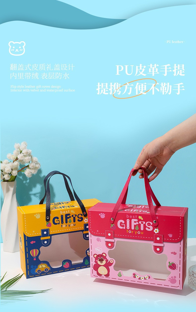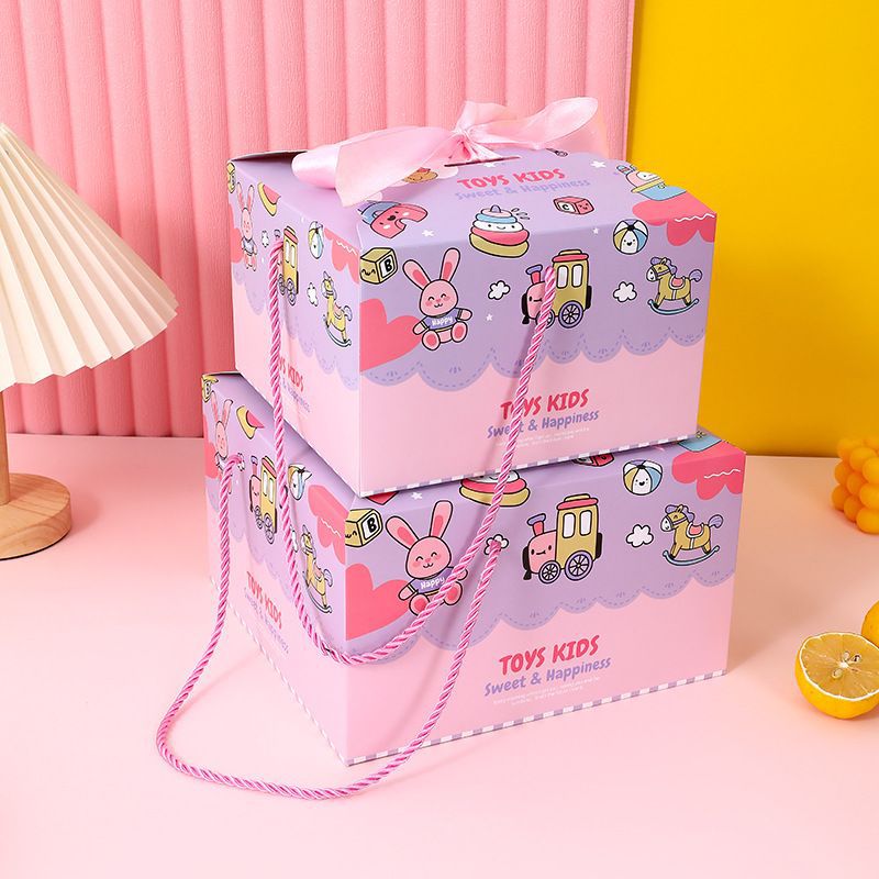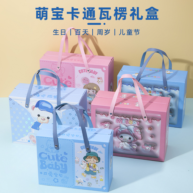 新款宝宝满月回礼盒 卡通图案抽屉盒 手提六一儿童节礼物盒生日