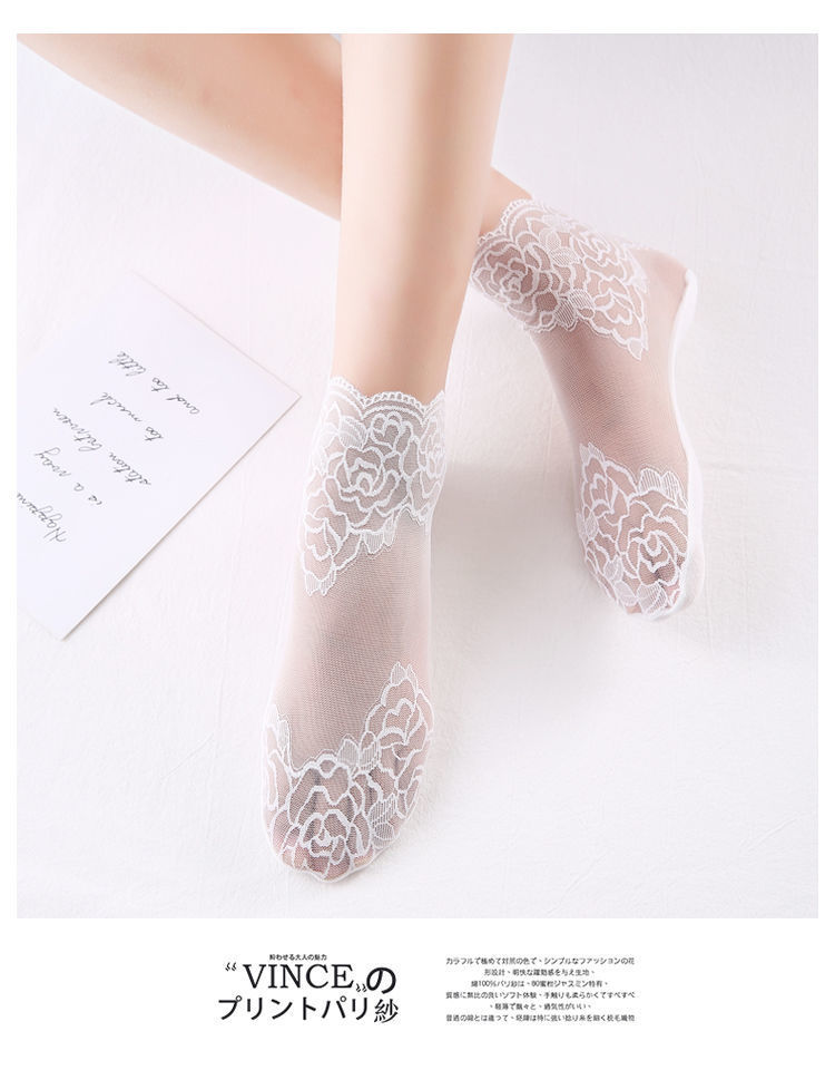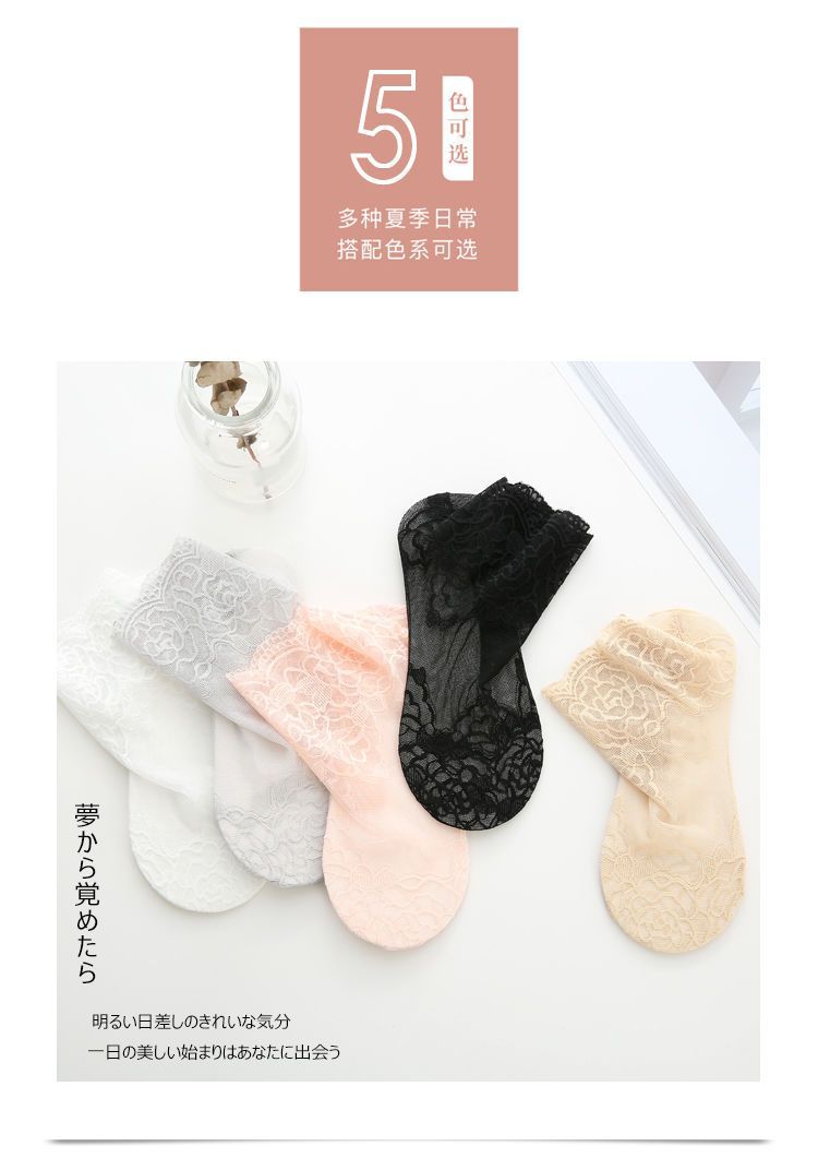 レースの靴下の女性の春の夏の薄いタイプの通気性のショートソックスの浅い口の中筒のショートソックスの女性の日本のネットの糸の靴下のカバー