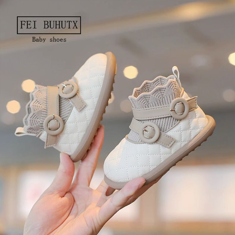 子供用マーティンブーツ、女の子用ショートブーツ、秋冬新作ブーツ、女児用ソックスブーツ、二重綿靴、女の子用靴、暖かい