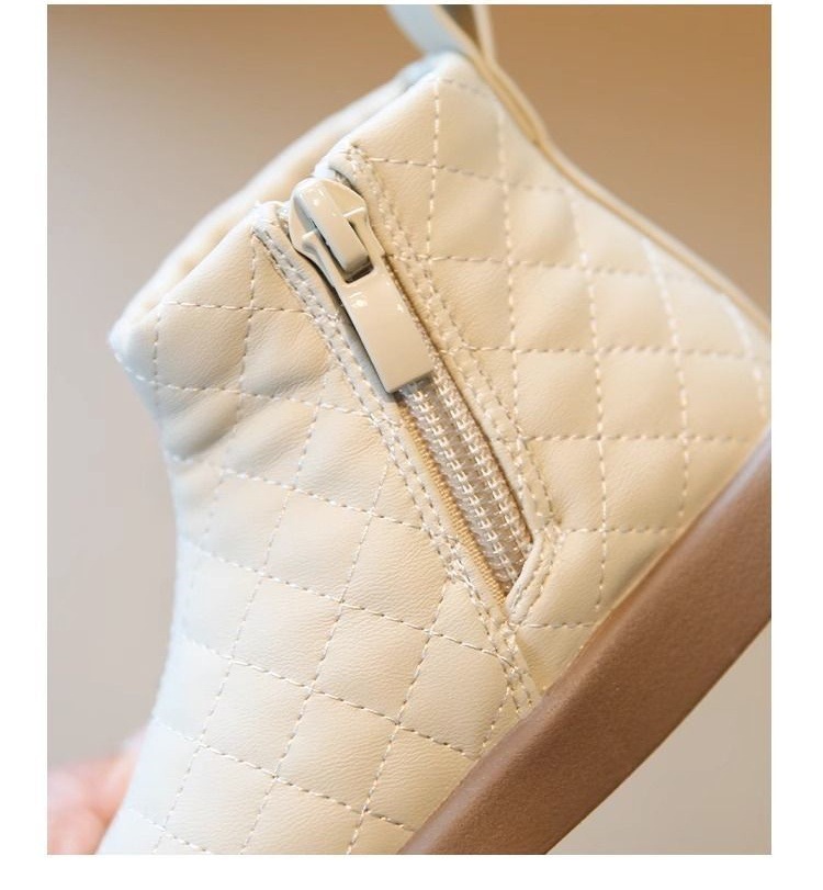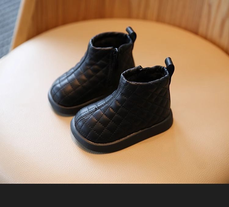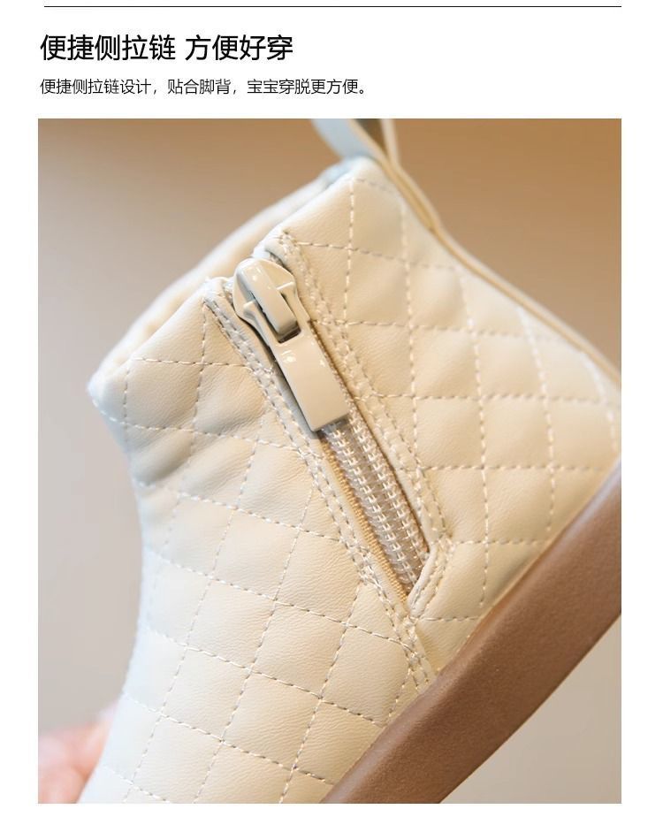 女童加绒保暖低筒靴2025冬季新款女宝宝简约洋气小皮靴中小童短靴