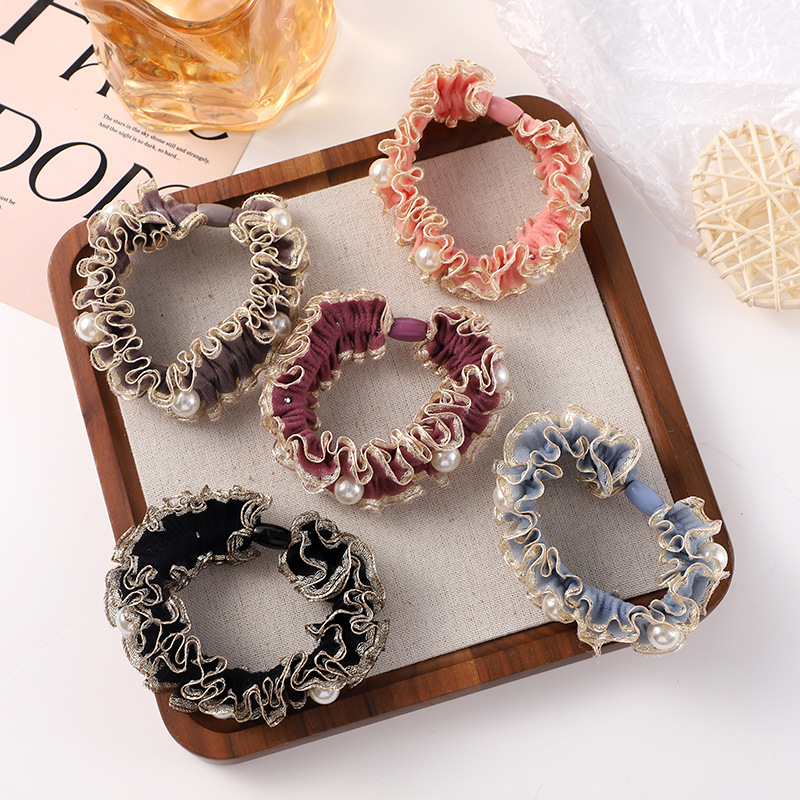 新款蕾丝边珍珠发绳发圈 甜美小香风头绳皮筋 扎马尾丸子头发饰