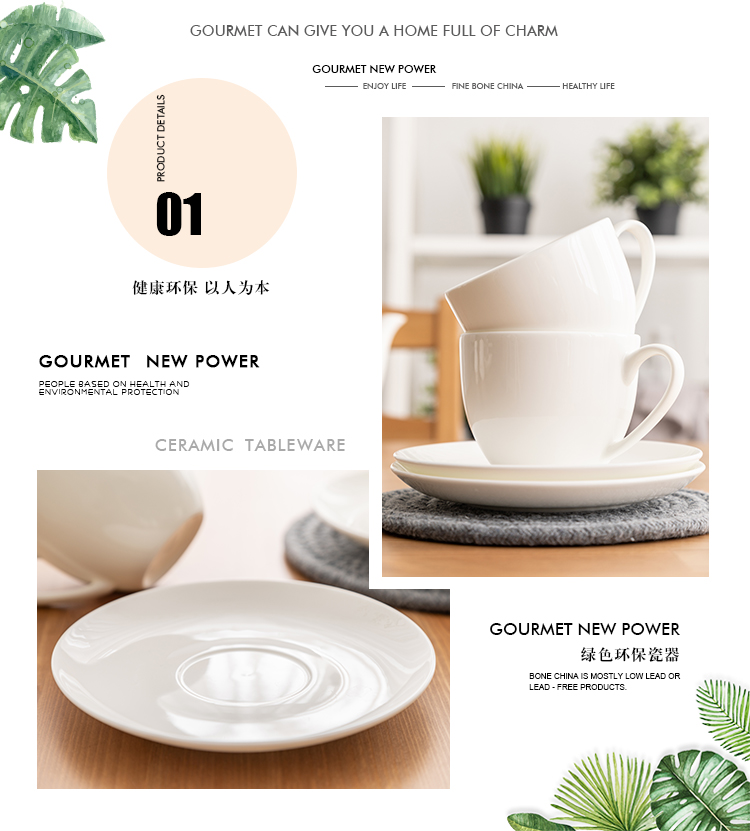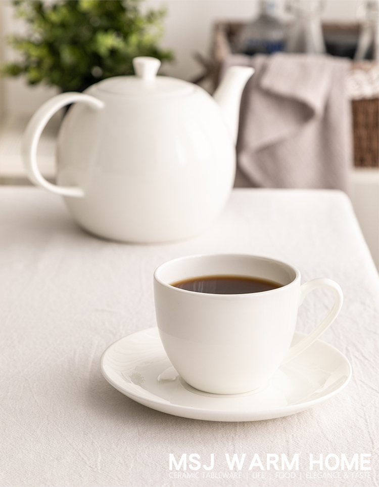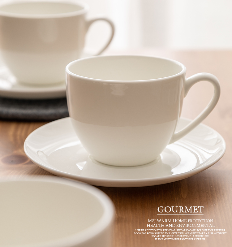 純粋な白い骨磁器シンプルなコーヒーカップ皿セットカプチーノ陶磁器午後茶カップカスタムロゴ文