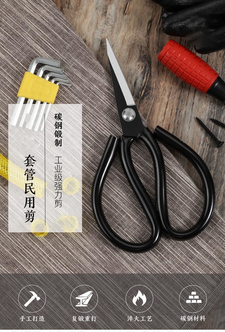 锰钢皮革剪刀防锈家用强力剪厨房用大剪子鱼鸡骨铁皮工厂工业用剪