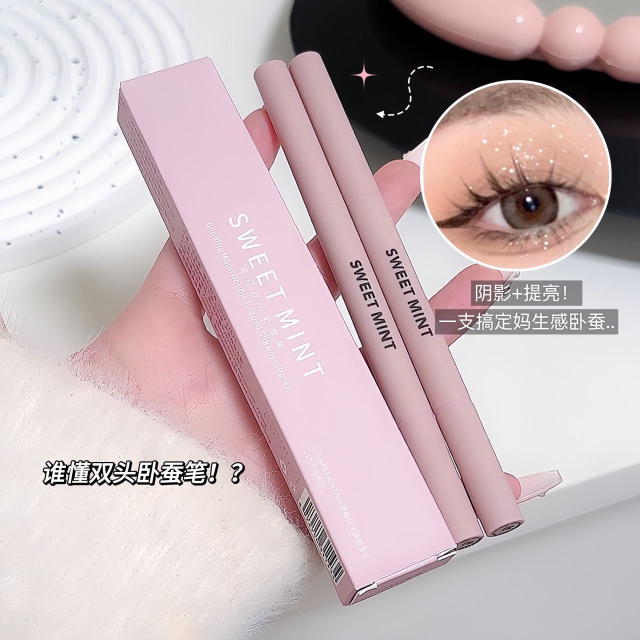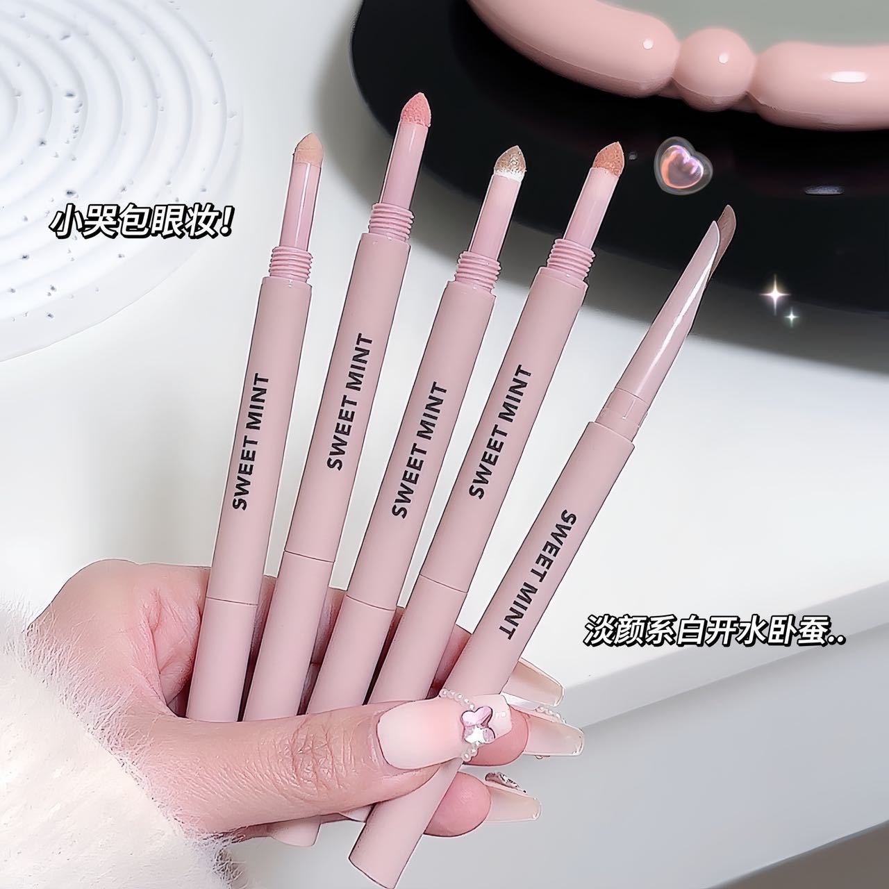 スウィートミントのメニスカスの双頭臥蚕の筆のハイライトは影の防水を明るくして色を落とさない自然な双頭臥蚕の筆です。