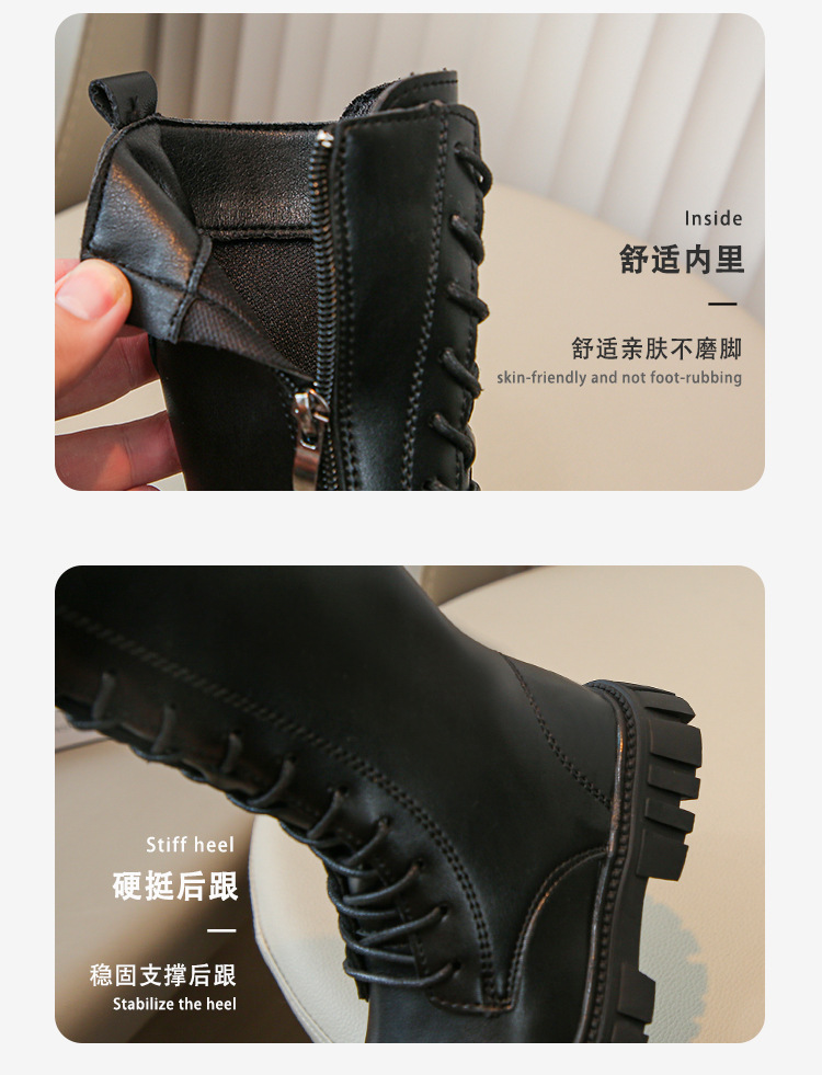2025秋冬季儿童皮靴圆头高跟筒中大童学生表演走秀新款女童马丁靴
