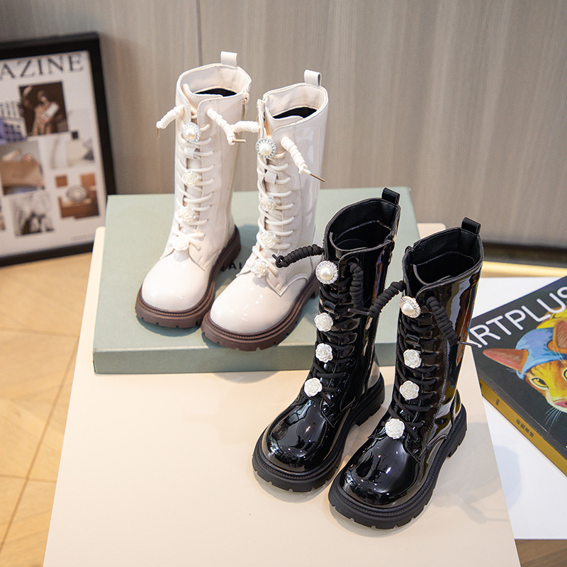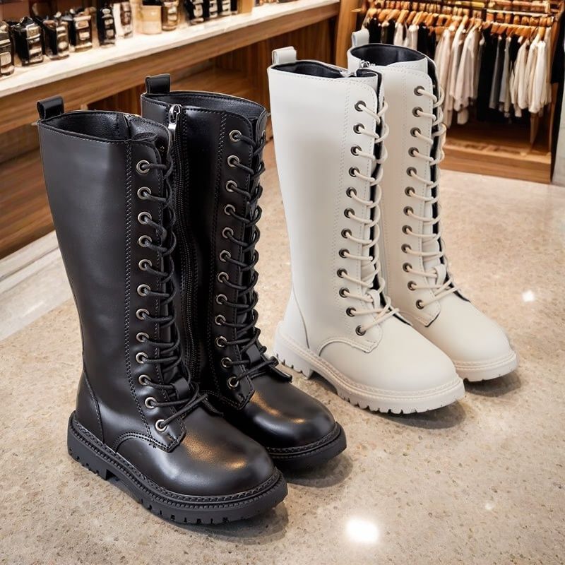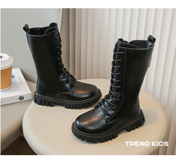 ガールズブーツ冬 2025 新しいハイブーツ韓国スタイル英国スタイルマーティンブーツプリンセスレザーブーツ少女ブーツ