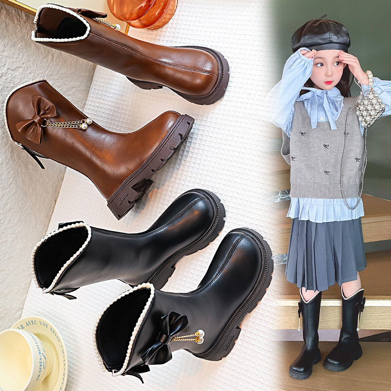 女童靴子冬季2025新款高筒靴韩版英伦风马丁靴公主皮靴小女孩长靴