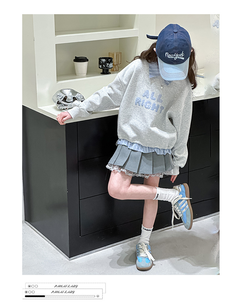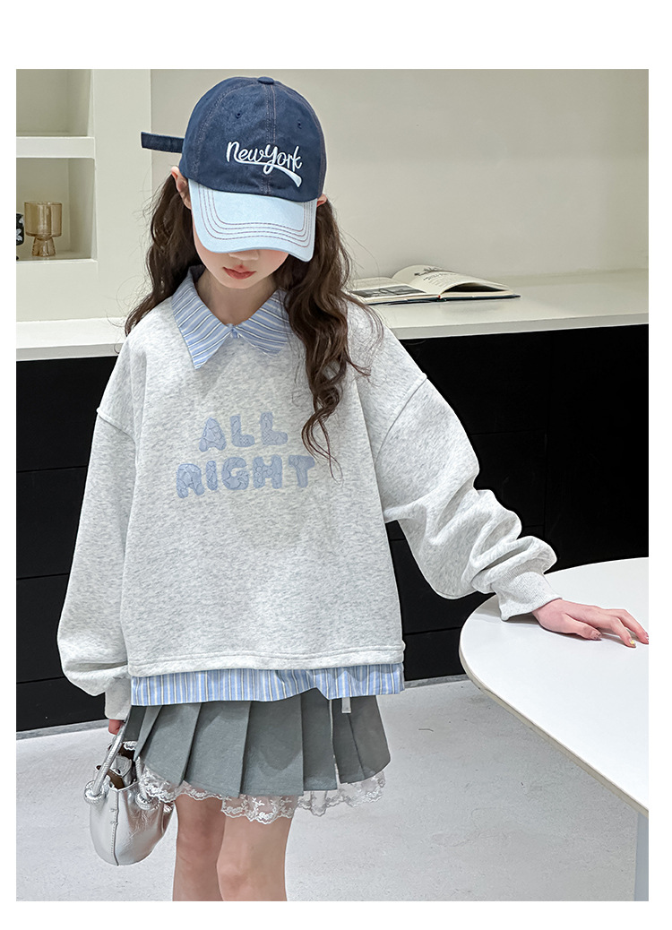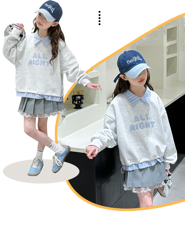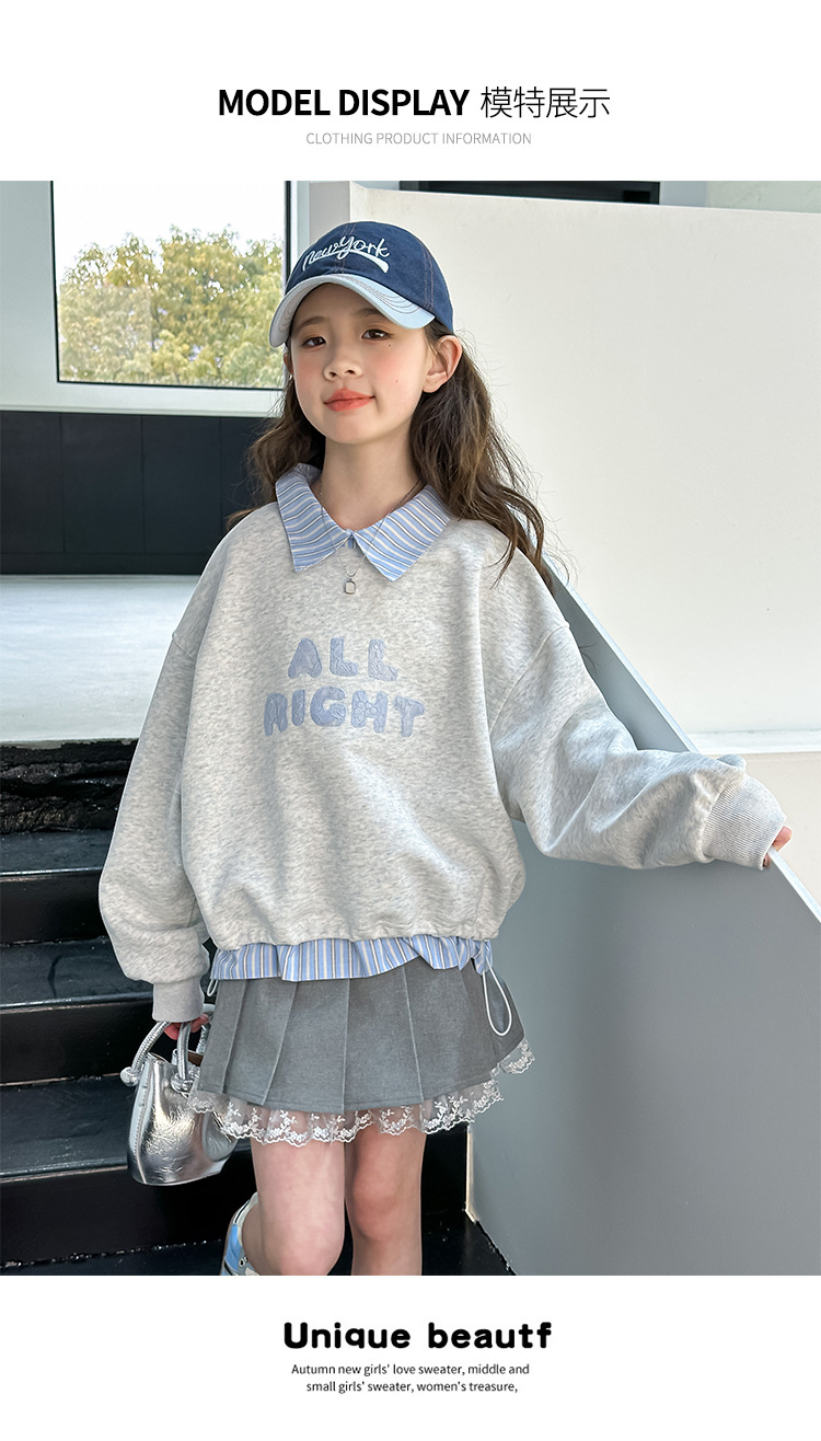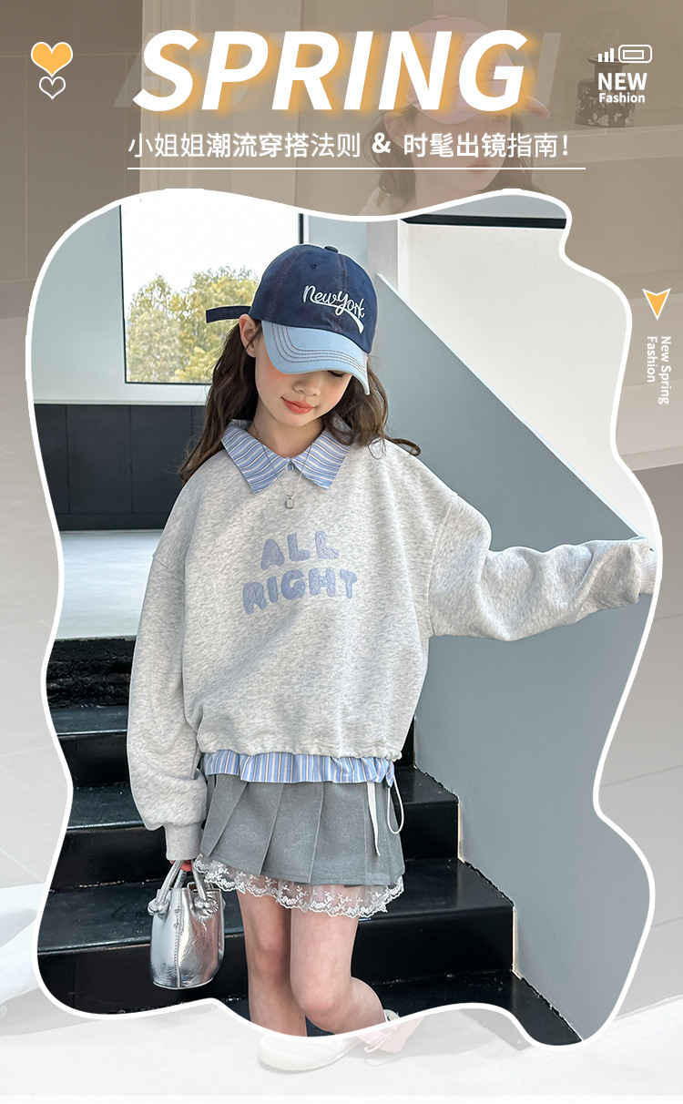 女の子の偽の2つの衛衣2025春の新型の大きい子供の洋気の韓国版のシャツの襟の上着の子供の百合の底のシャツ