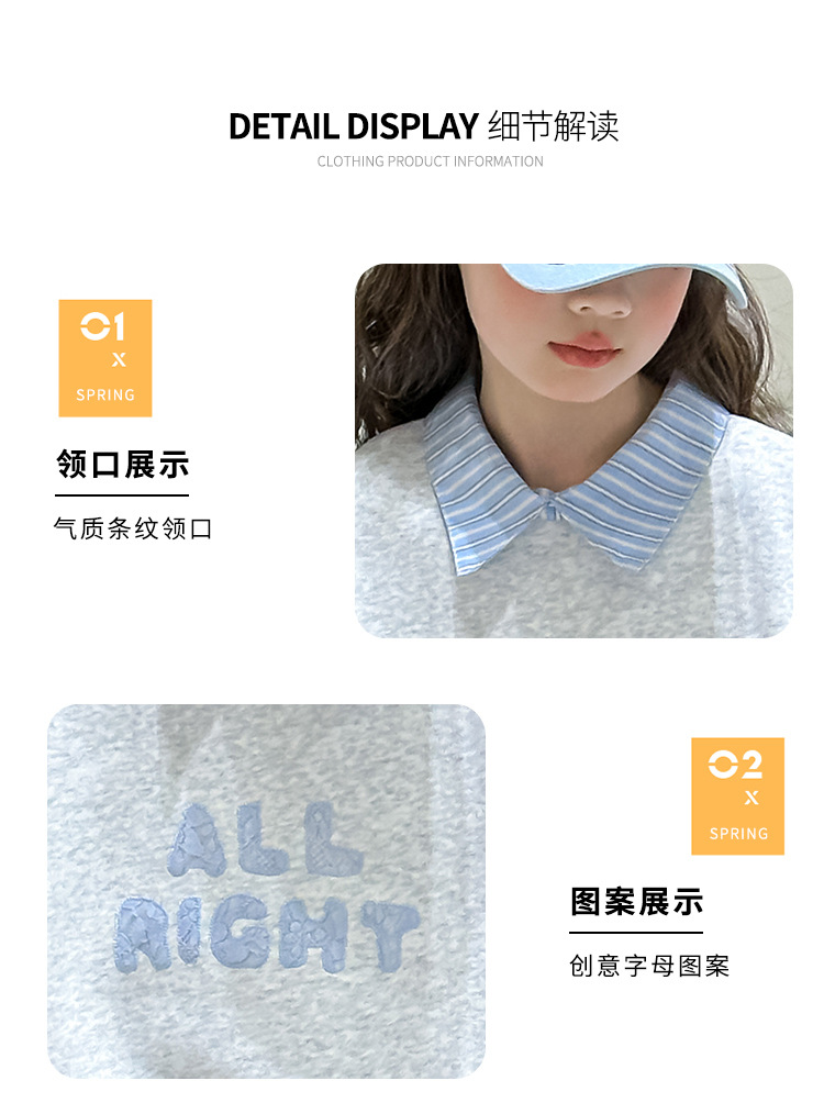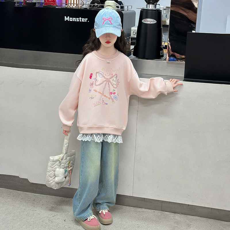 女の子のパーカー春秋2025の新型の大きい子供の丸首の長袖の春の服の女の子の洋風の流行のゆったりしている上着は底を打ちます。