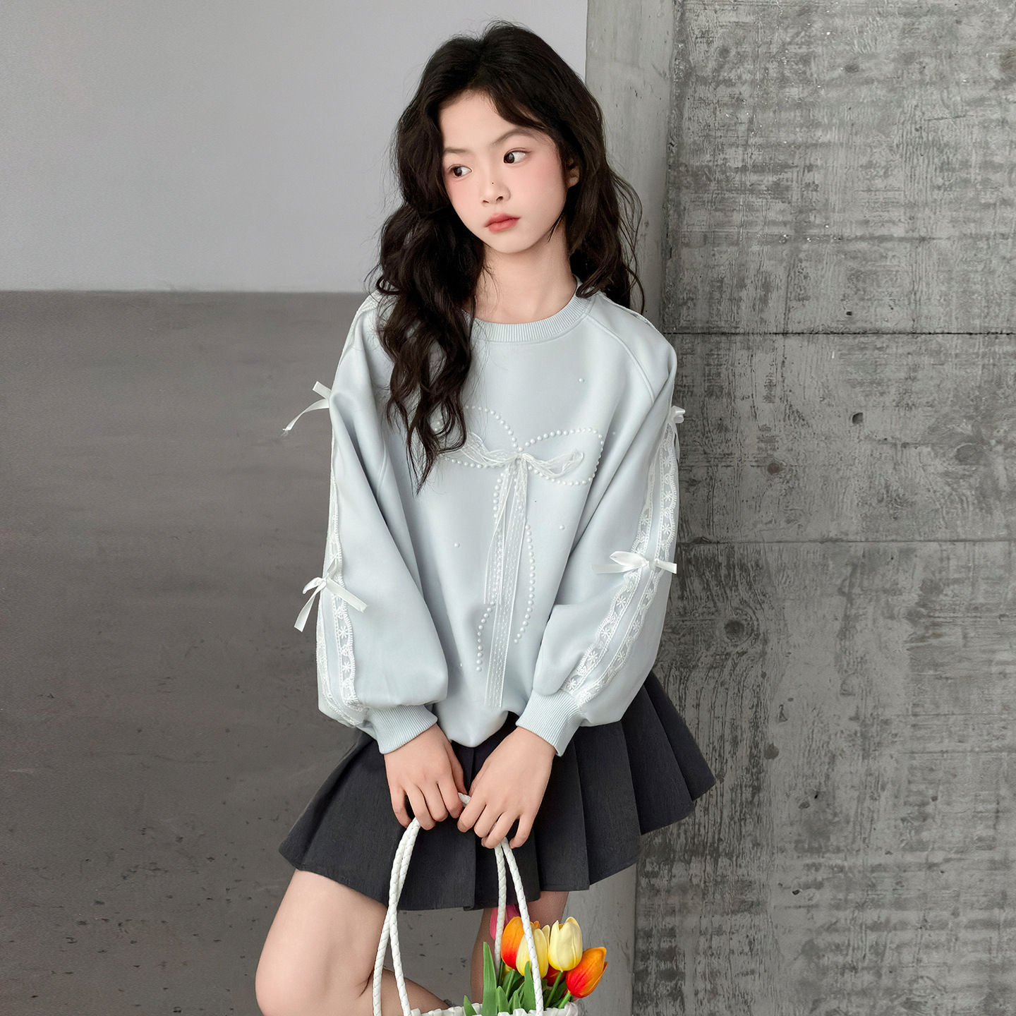 女童洋气卫衣2026春新款大童韩版百搭时髦长袖甜美上衣儿童打底衫