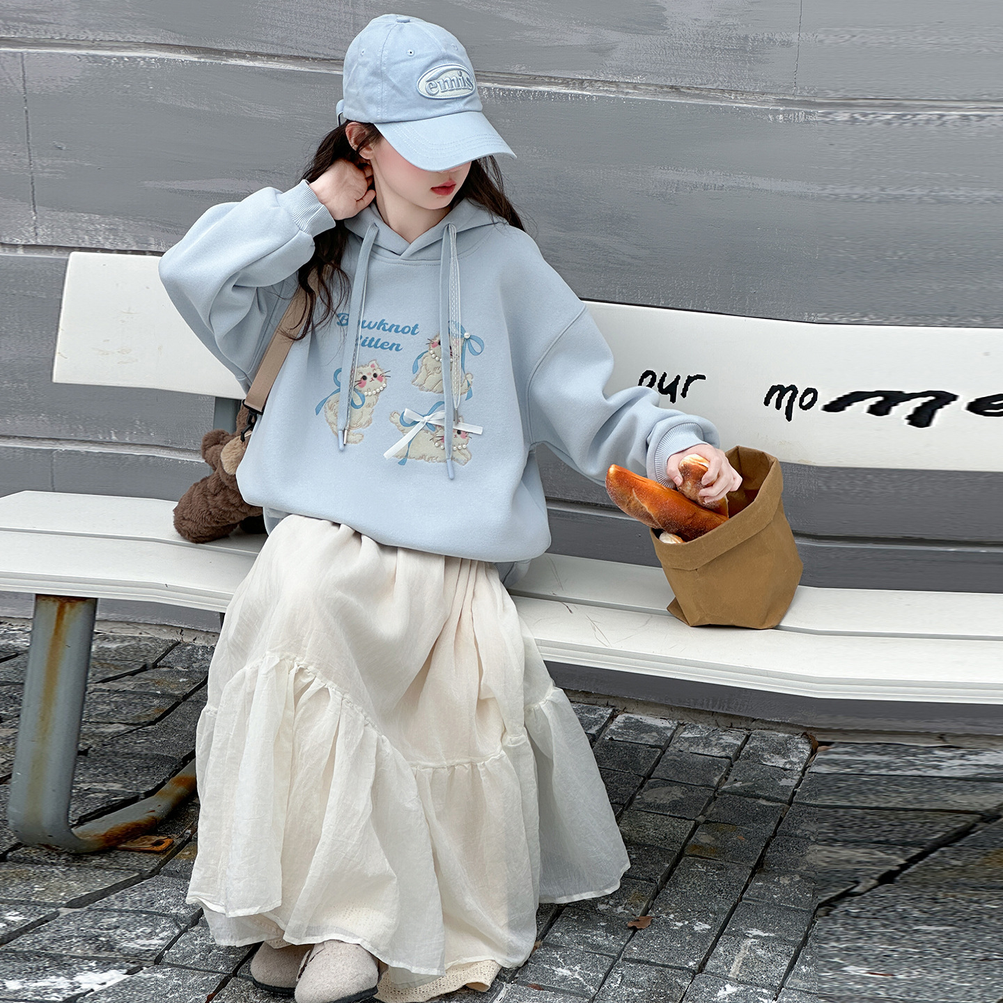 女童加绒连帽卫衣2025秋冬新款大童韩版时髦休闲百搭卡通加厚帽衫