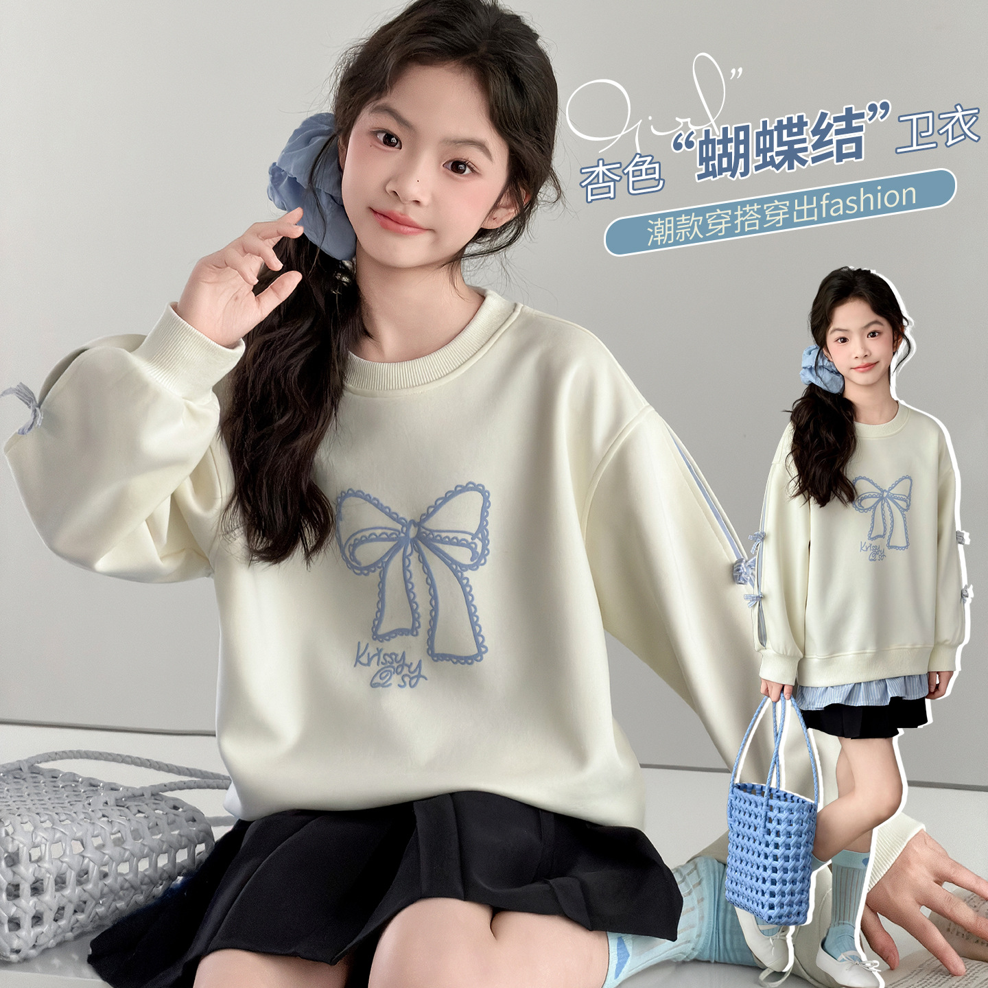 女童短款卫衣2026春秋新款儿童女孩大童春装洋气蝴蝶结时髦衣服潮