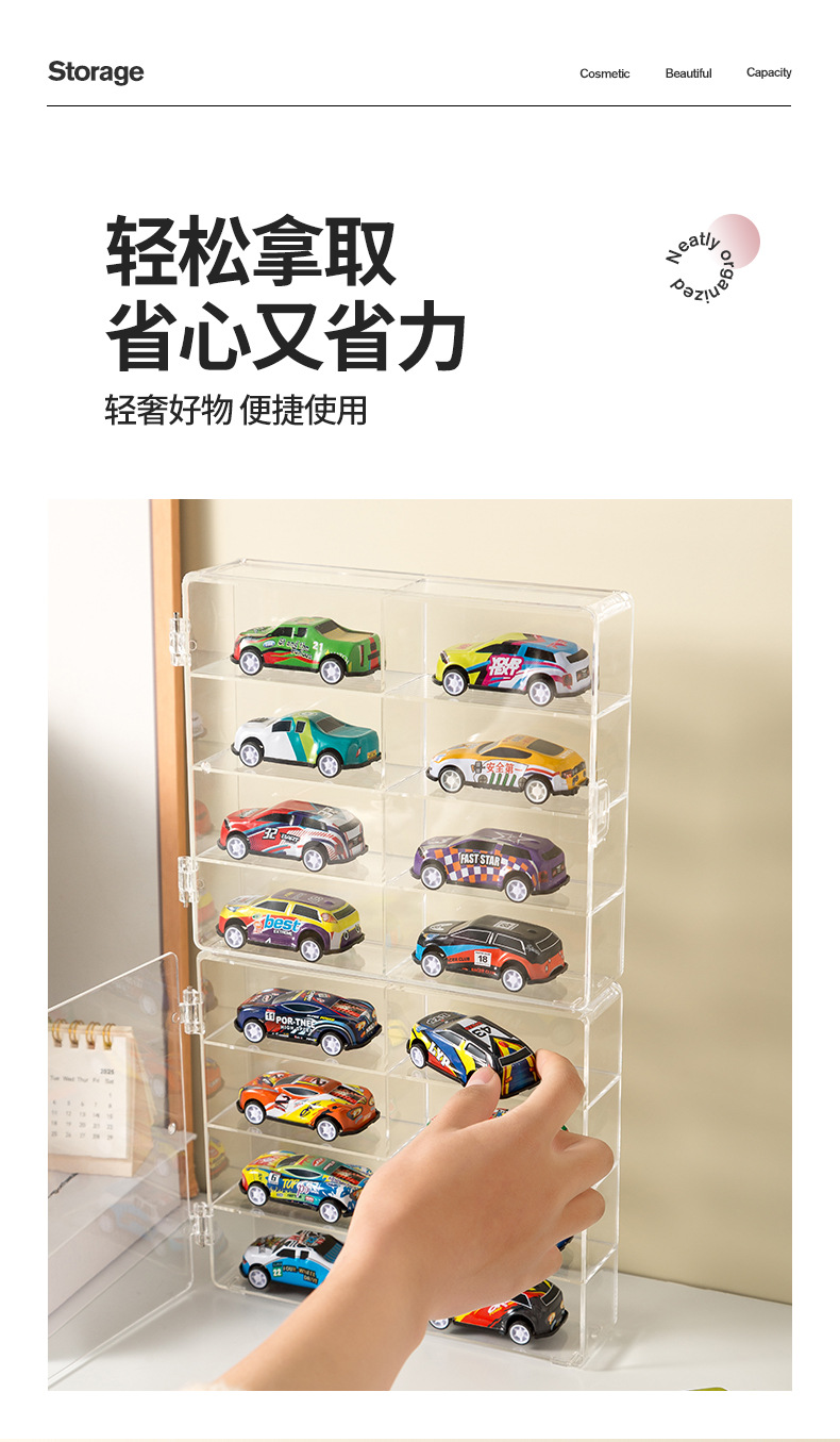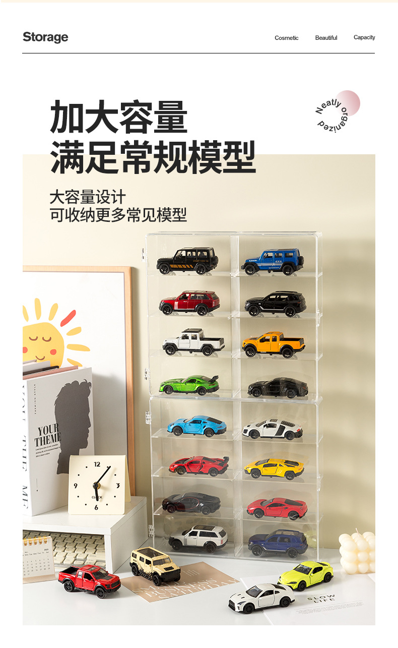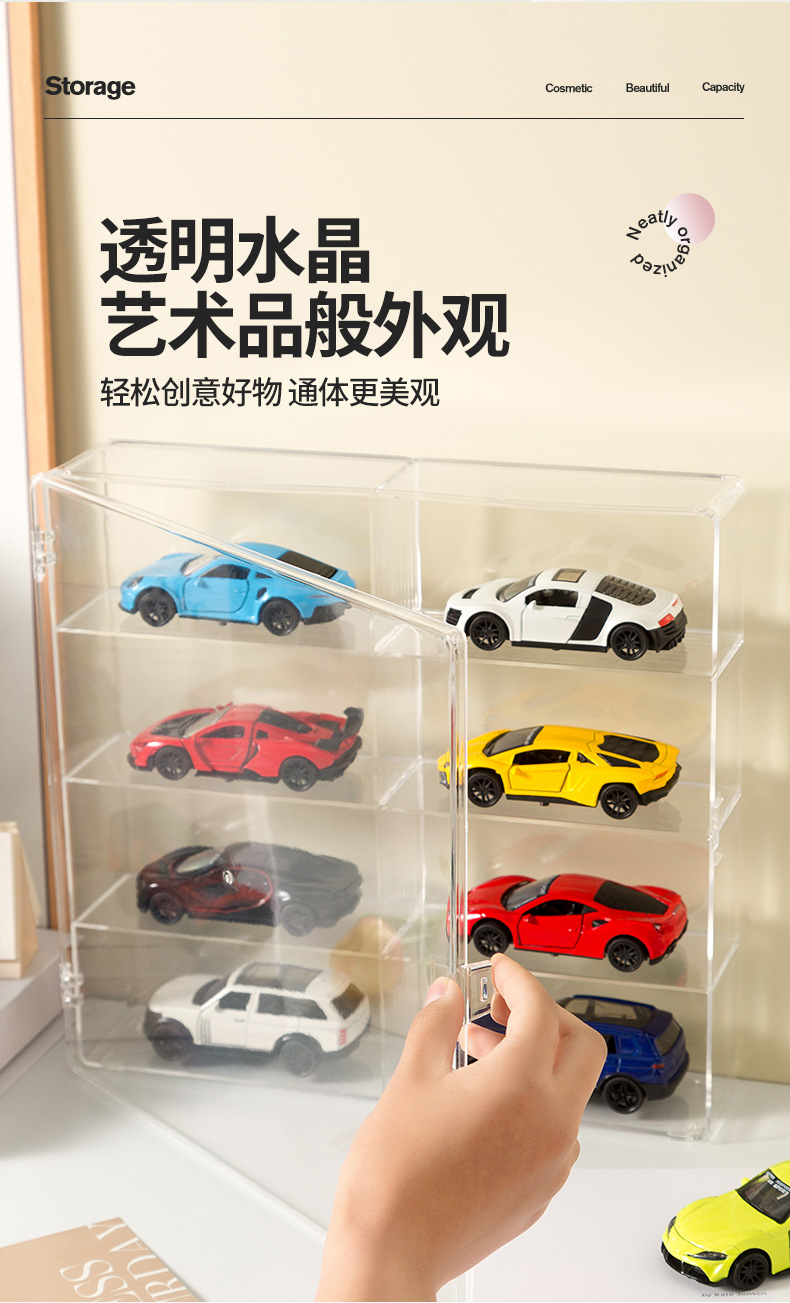 8格自動車玩具収納ケースアクリル透明展示棚多格防塵収納ケース灰防止カード収納