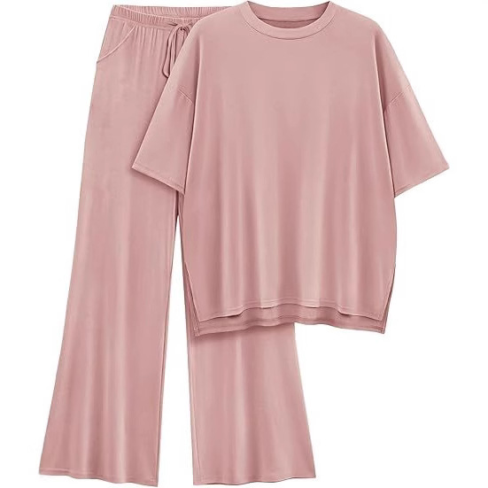 Amazon レディース カジュアル セット 2 ピース カジュアル ルーズ 半袖 トップスとワイドレッグ パンツ スウェット スーツ