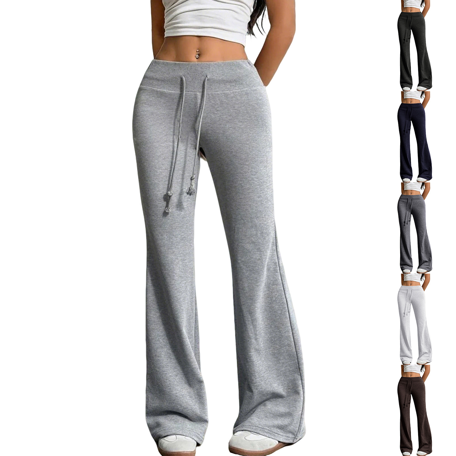 2025秋季季跨境欧美女装新款时尚抽绳高腰休闲喇叭长裤休闲裤女