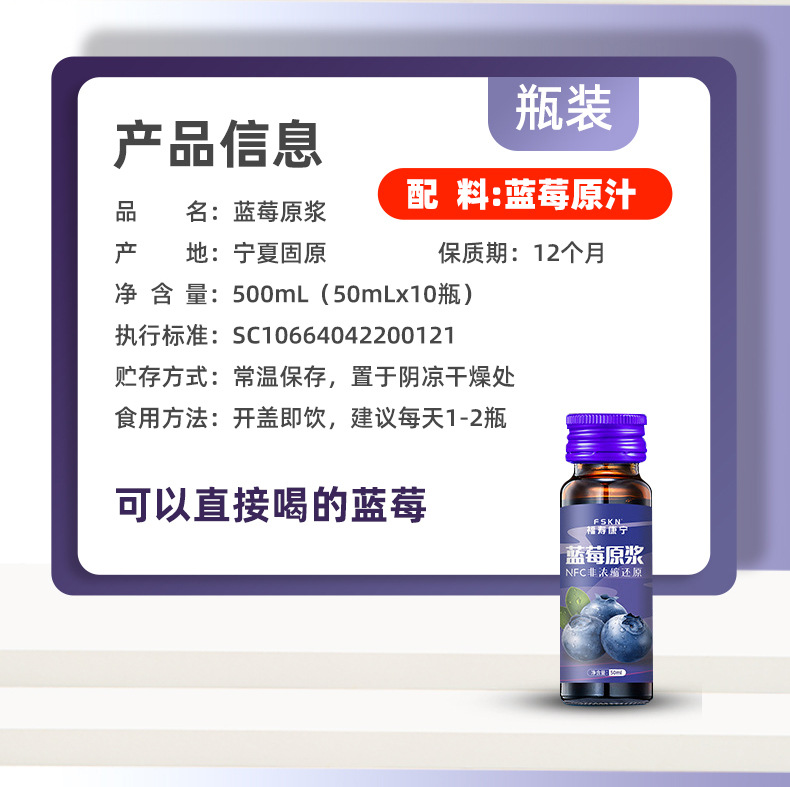 【福寿康寧】ブルーベリー原パルプNFC生果生搾りブルーベリー原汁大興安嶺ブルーベリー果キサントフィル