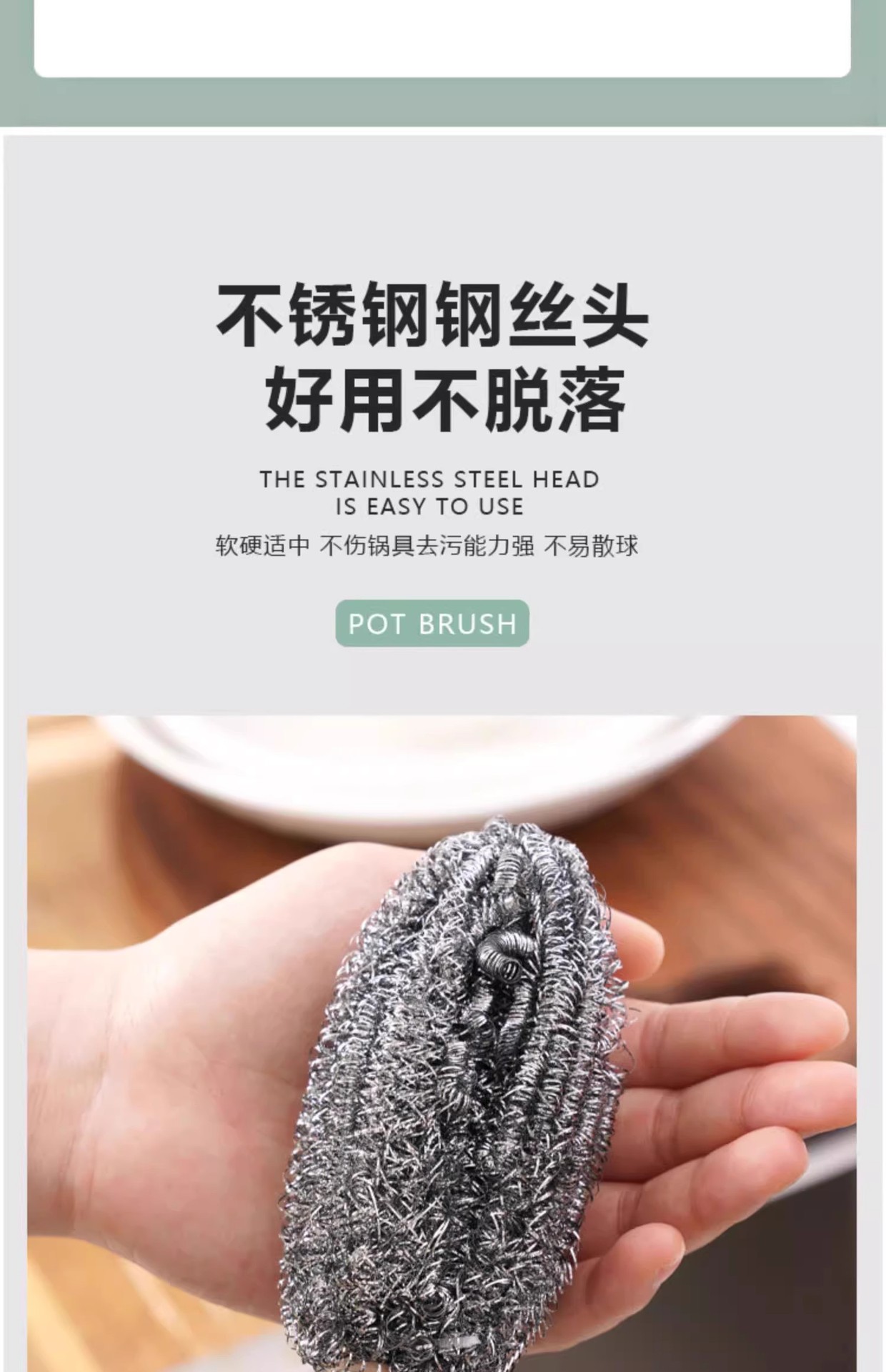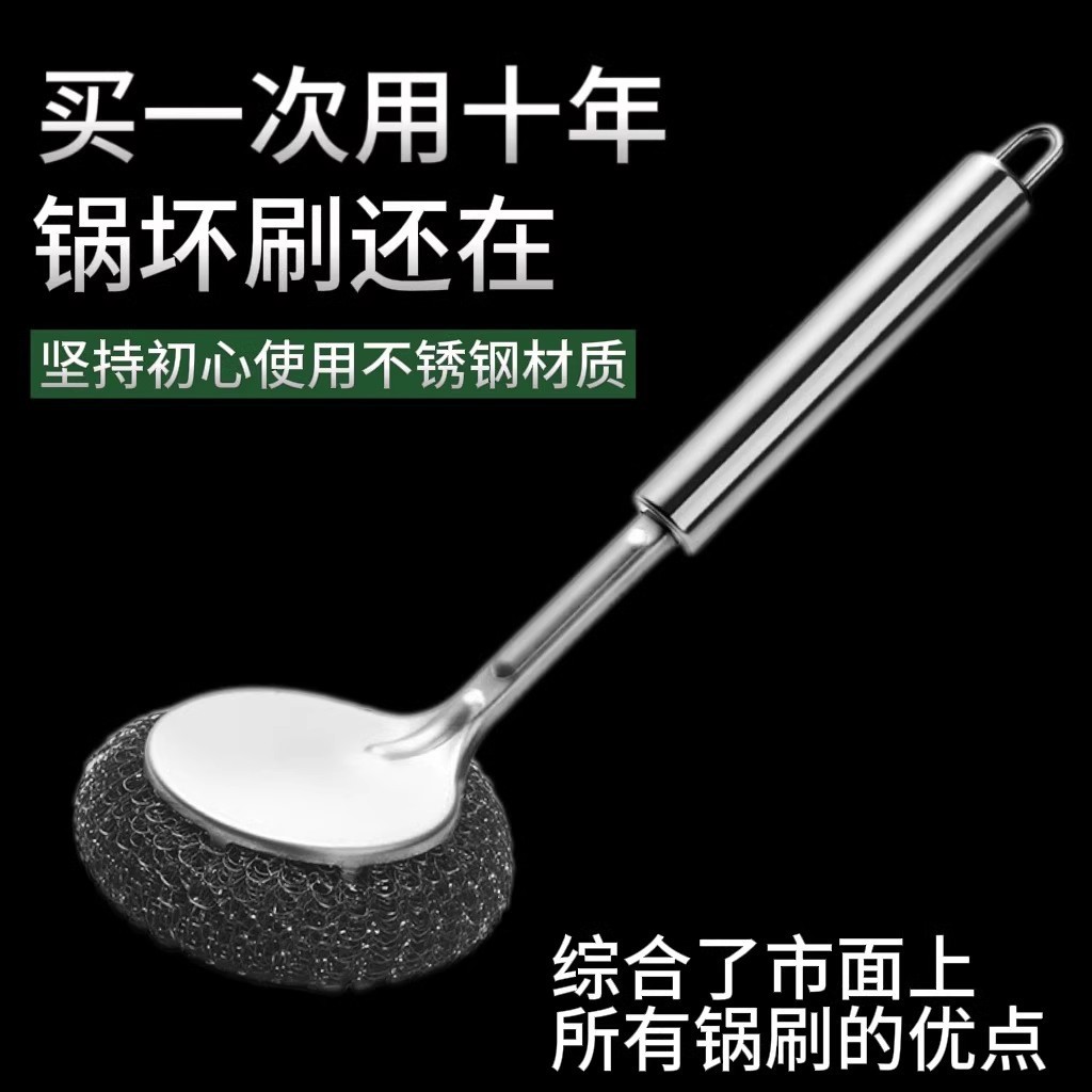批发不锈钢锅刷长柄清洁刷子厨房专用钢丝球带手柄去污不掉丝