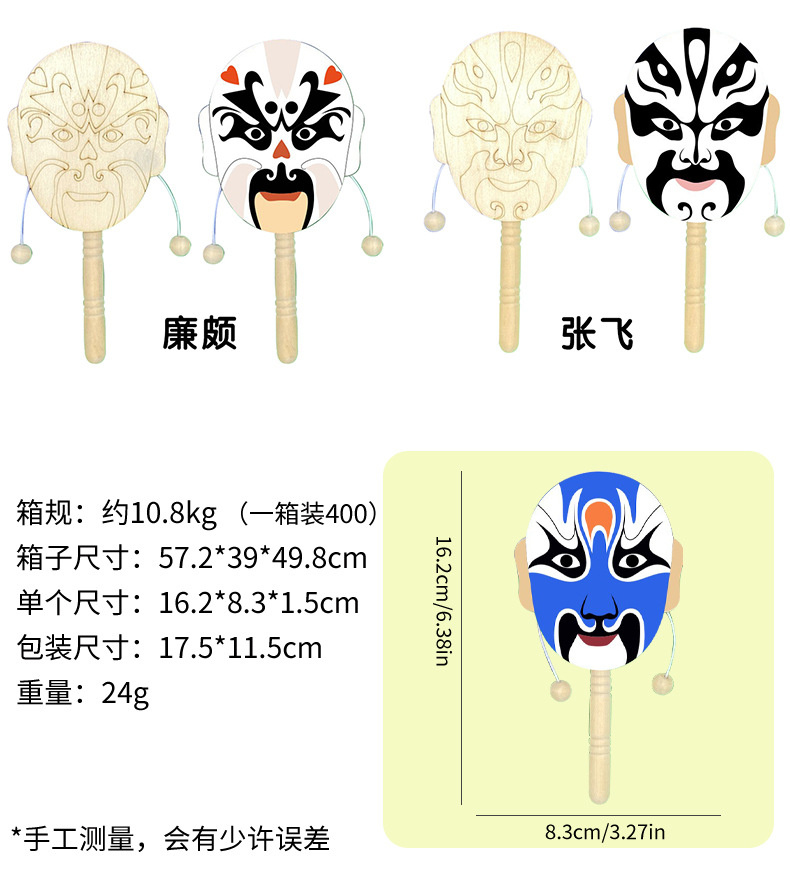 中国の伝統的な京劇のフェイスペイントガラガラ手作り DIY 幼稚園楽しい落書き制作材料クリエイティブアート
