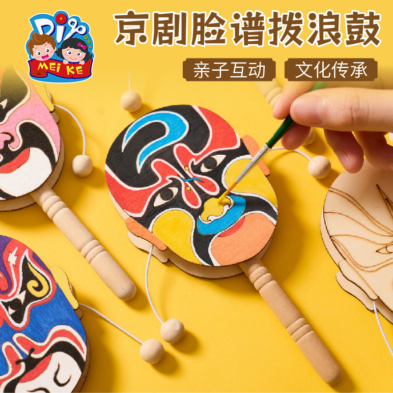 京剧脸谱拨浪鼓手工diy儿童制作材料幼儿园创意美术木质涂色玩具