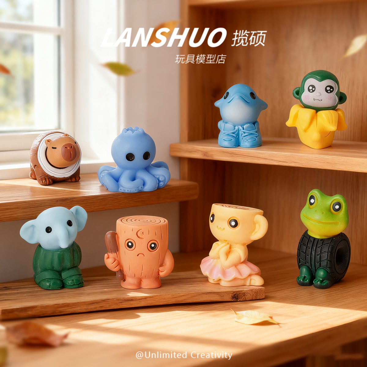 树脂卡通立体Q版山海经公仔 树脂潮玩DIY配件自制家居桌面小摆件