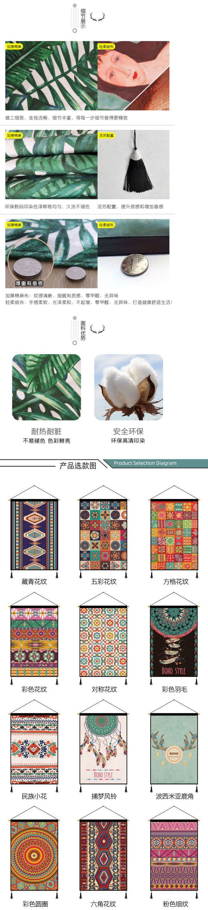 タペストリーボヘミアン風布芸画壁面装飾画客間寝室壁布画民宿装飾壁画剛逸