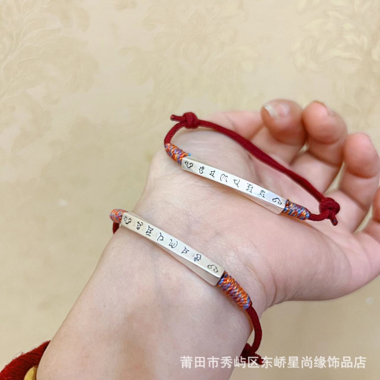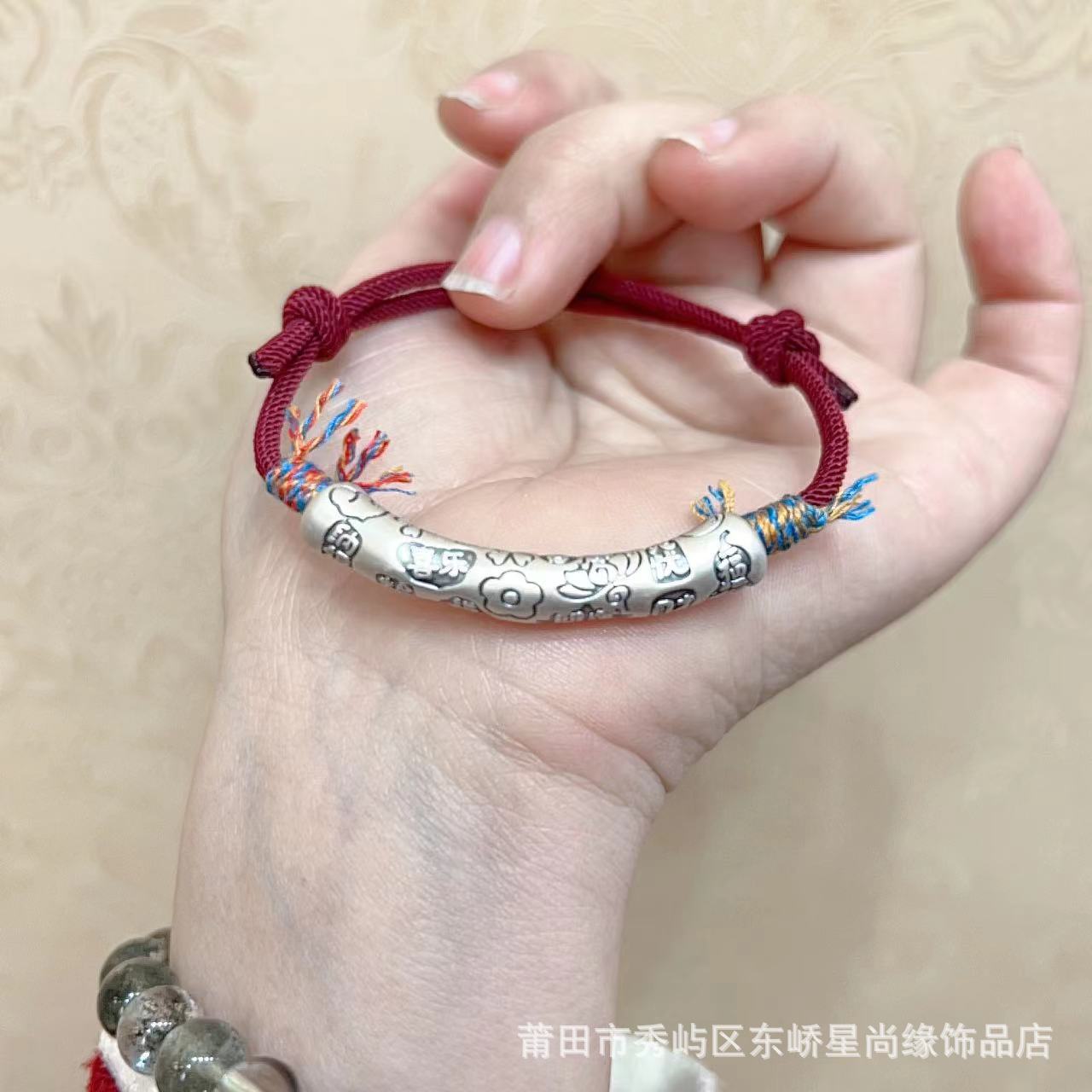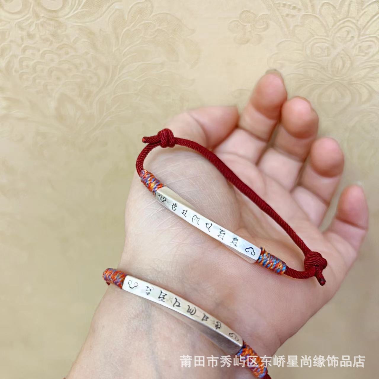 999足银圆牌财神福字红绳手链女简约新中式设计平安喜乐手环批发