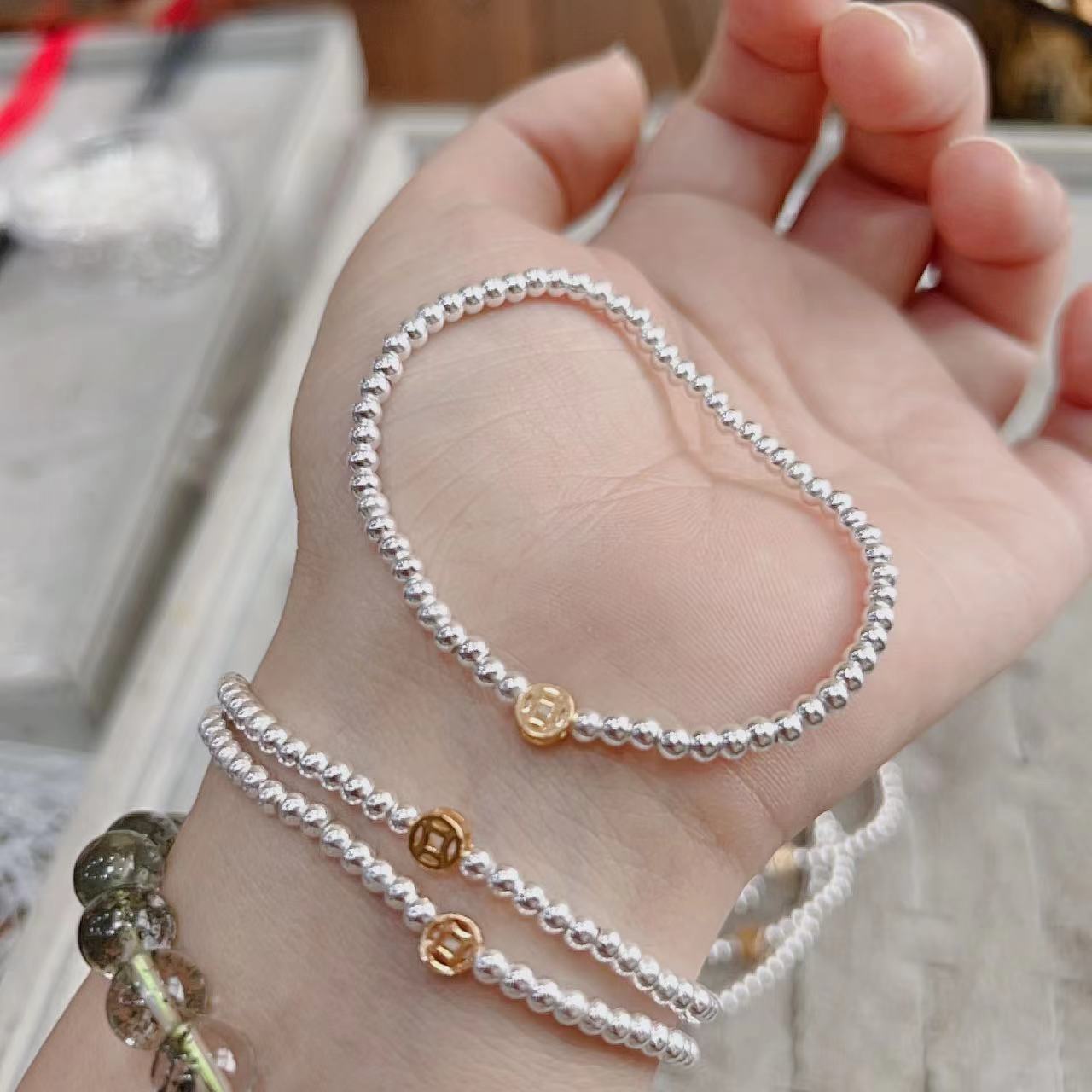 韓国スタイルのライトラグジュアリー s990 スターリングシルバービーズマネーブレスレットゴールドブレスレット女性のクールなスタイルのファッションギフト親友ブレスレットバッチ