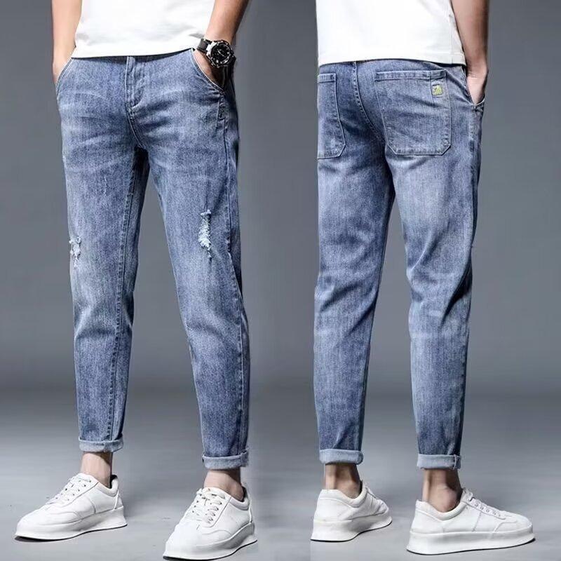 ジーパンの男性2025年と秋のファッションブランドの修身の小さい足の韓国版の潮流の新型の百合のカジュアルな弾力の長いズボン