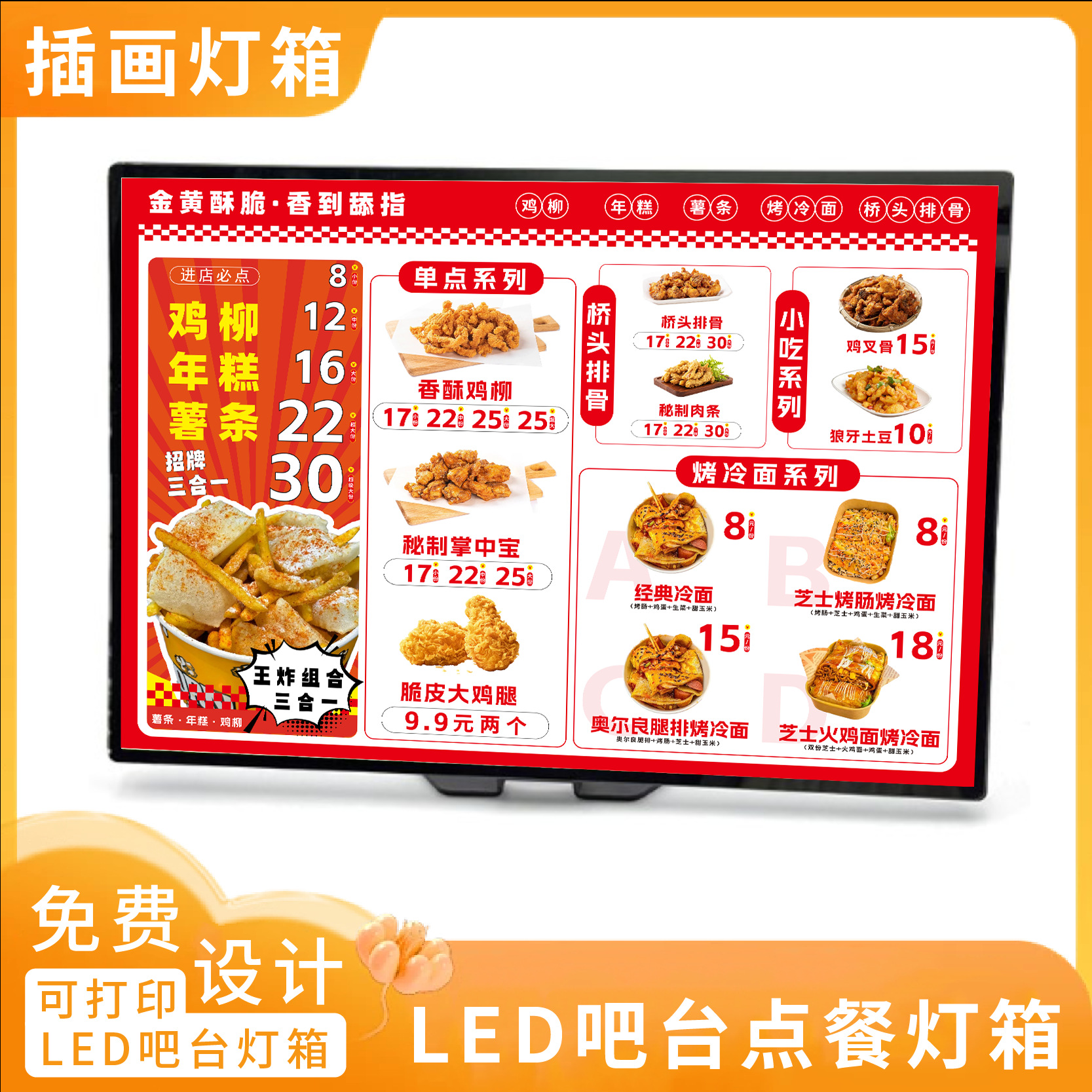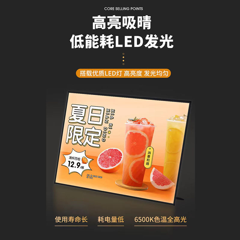 V型底座LED灯超薄吧台可调光立式广告牌奶茶店价目表发光点餐灯箱
