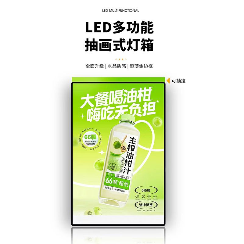 超薄抽画灯箱批发广告牌钢化玻璃高清发光led海报菜单电梯展会用