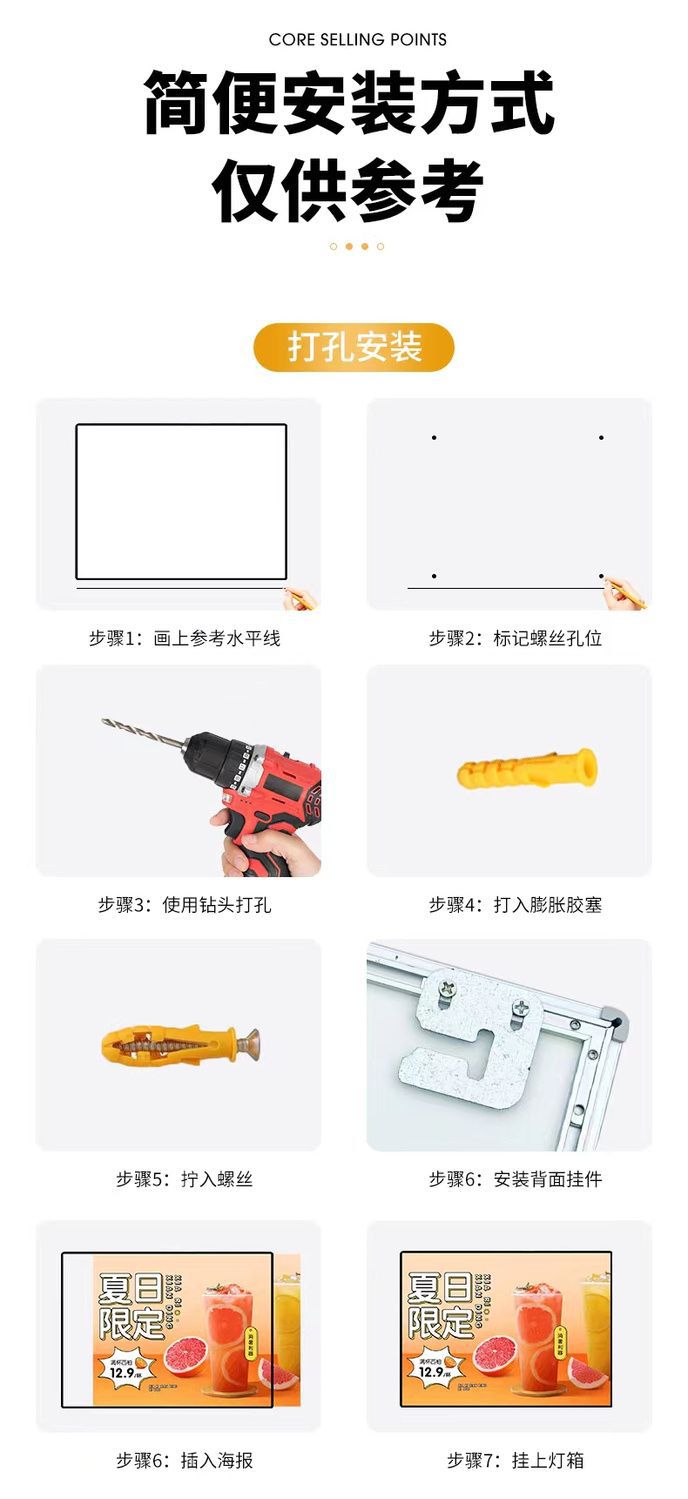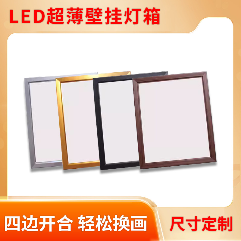 ライトボックス片面四辺開閉式発光広告板壁掛けアルミニウム合金フレーム調光可能LED透光