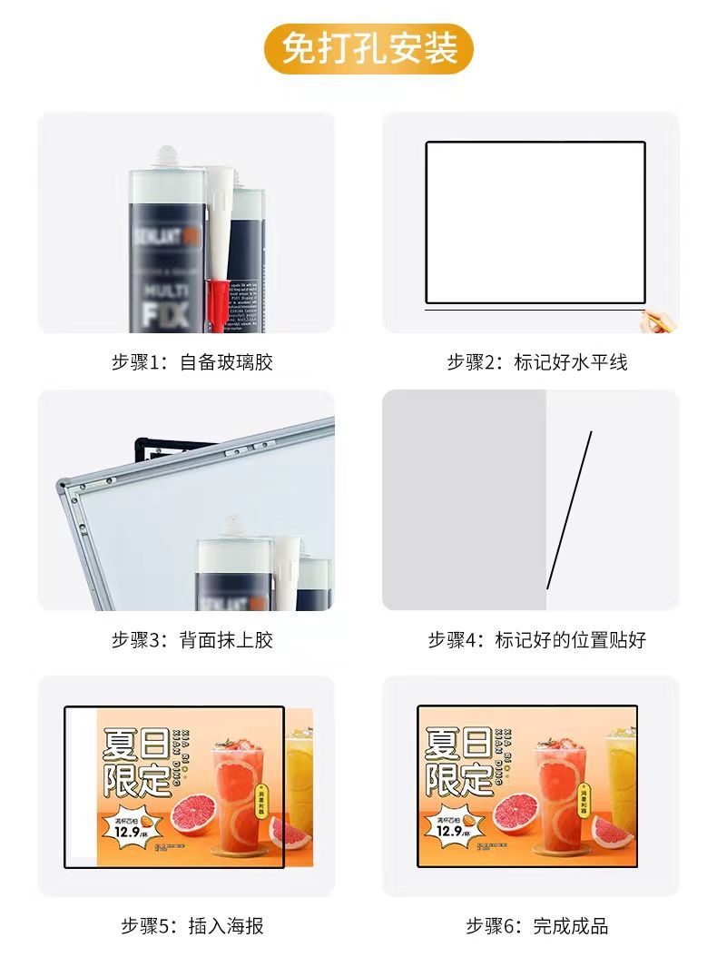新型ガラス超薄型抽選ライトボックスled発光看板ミルクティー店メニュー壁展示看板ライトボックス