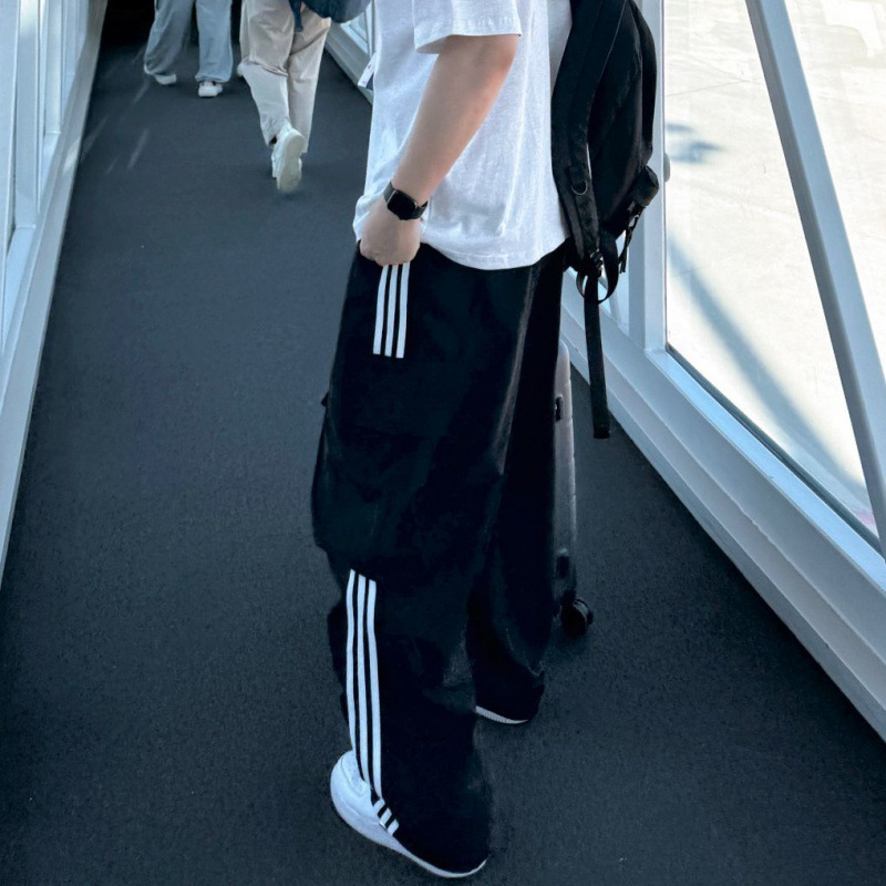 MYQデザイン感ストライプ工装ズボン男性夏のゆったりとしたワイドレギンス