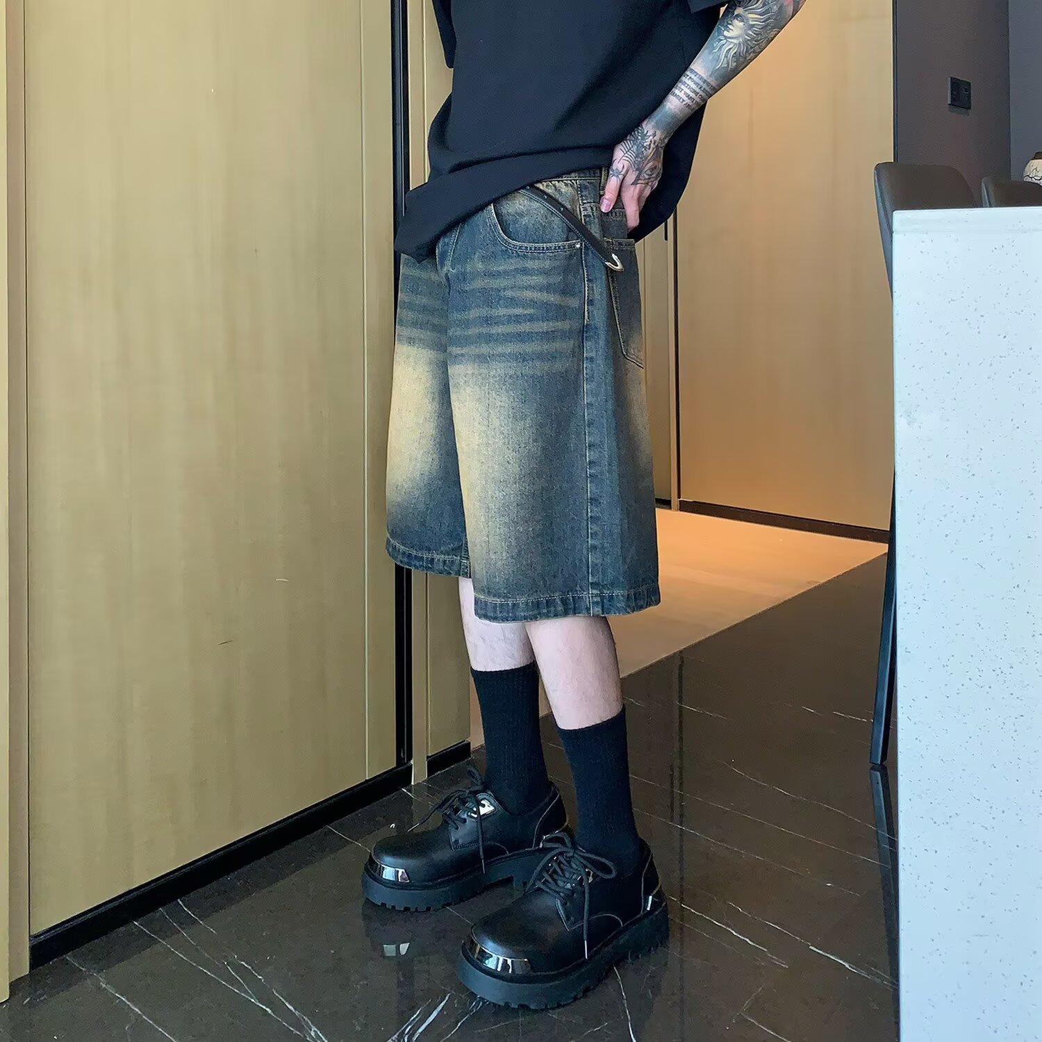 MYQレトロ水洗いデニムショートパンツ男性夏のゆるいカジュアルパンツ韓国版トレンド膝五分ズボン