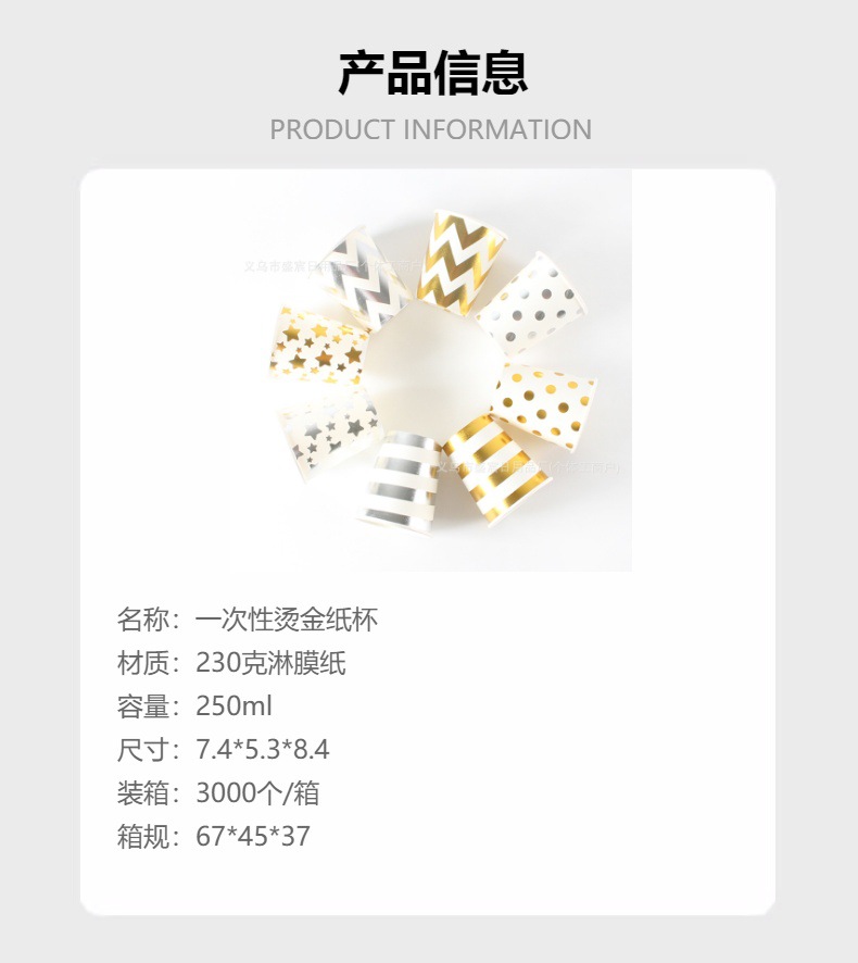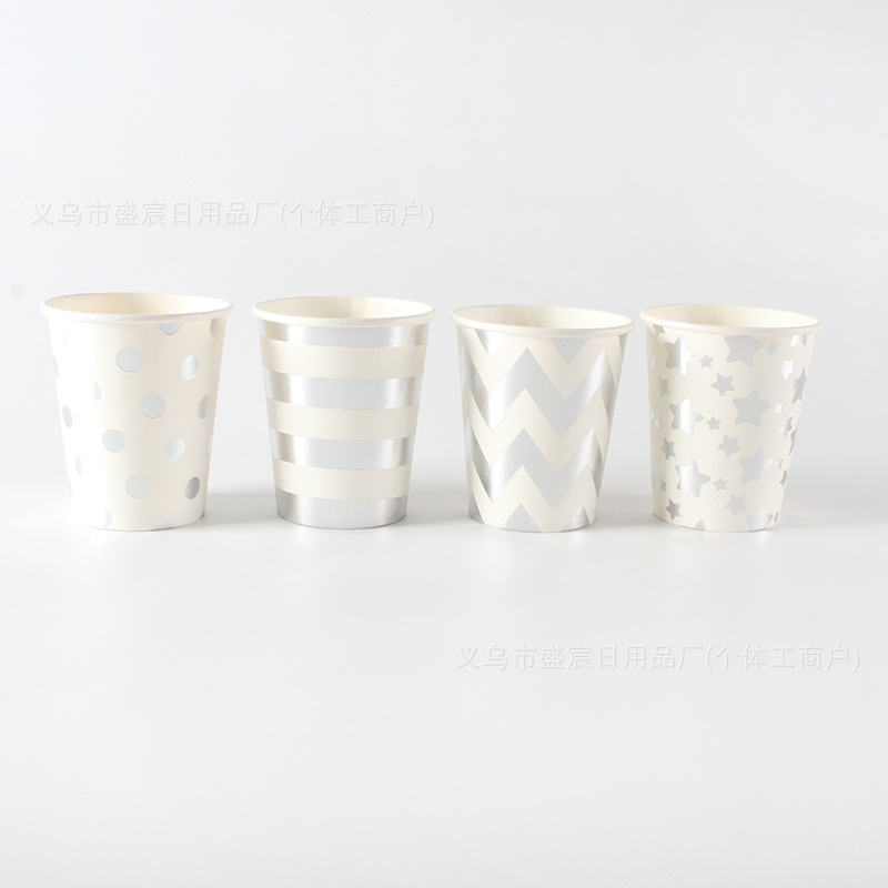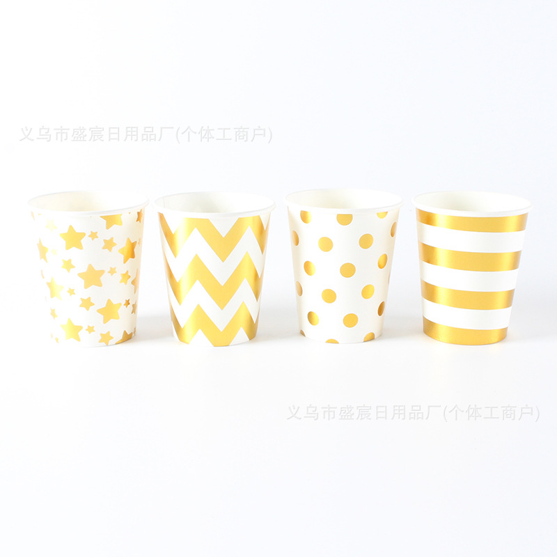 250ml箔押し紙コップ 9オンス使い捨てカップ ストライプ・ドット・五芒星柄 クリエイティブカップ 生分解性紙コップ
