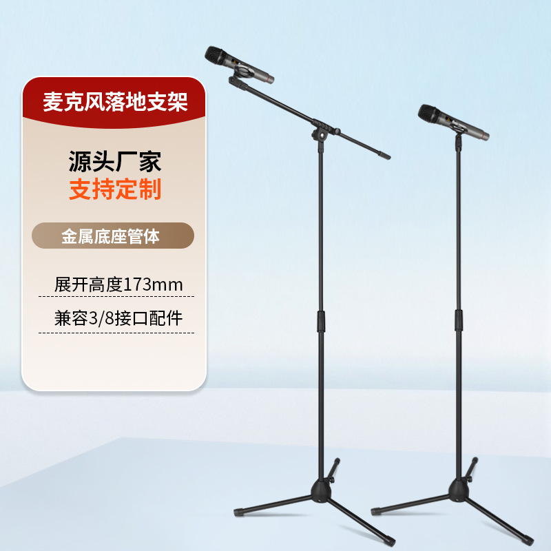 直销话筒麦克风支架横杆落地立式舞台演出三脚架k歌可伸缩落地式