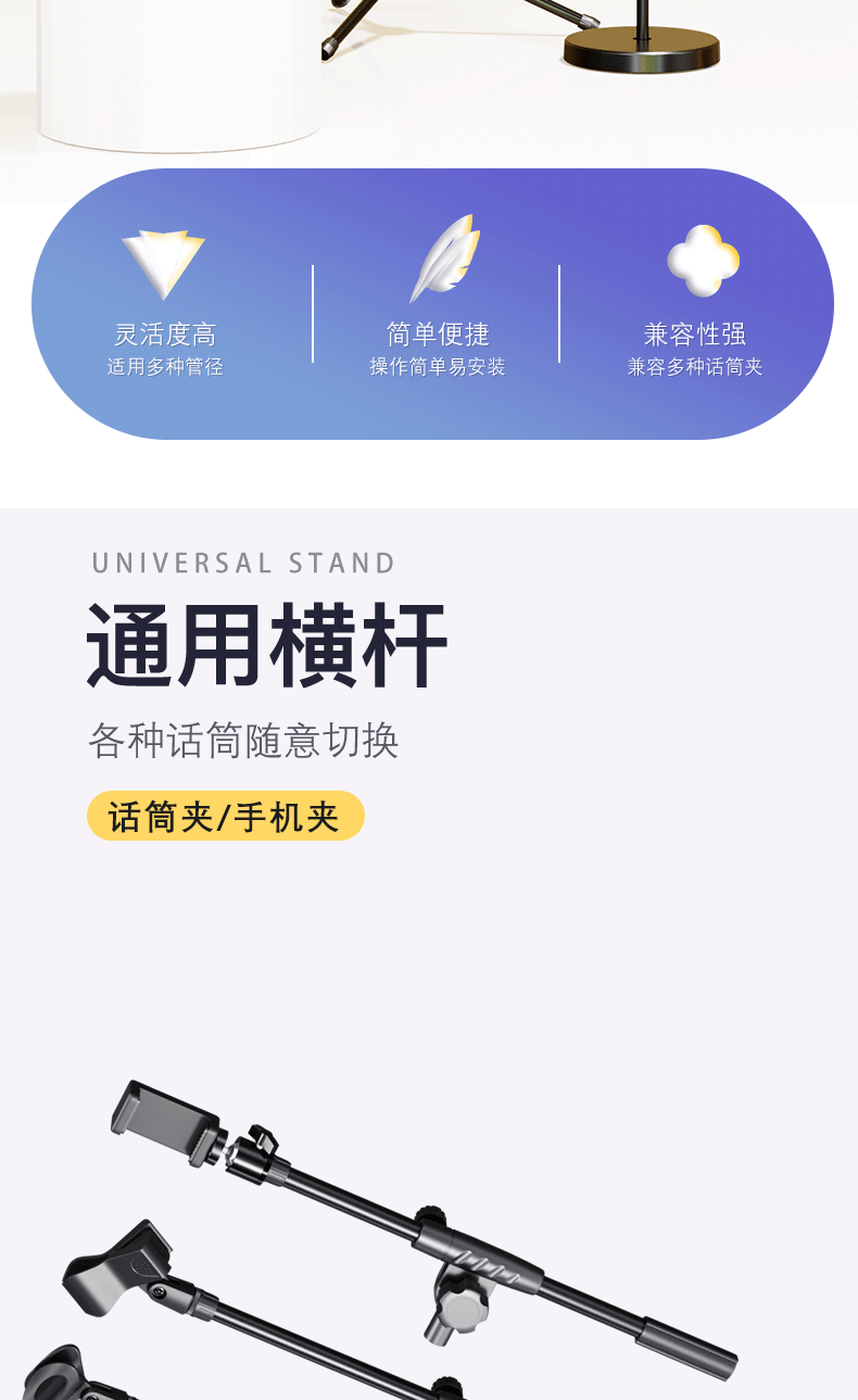 床置き直播スタンド横棒マイク延長レバー下げ棒増機位クリップスタンド部品