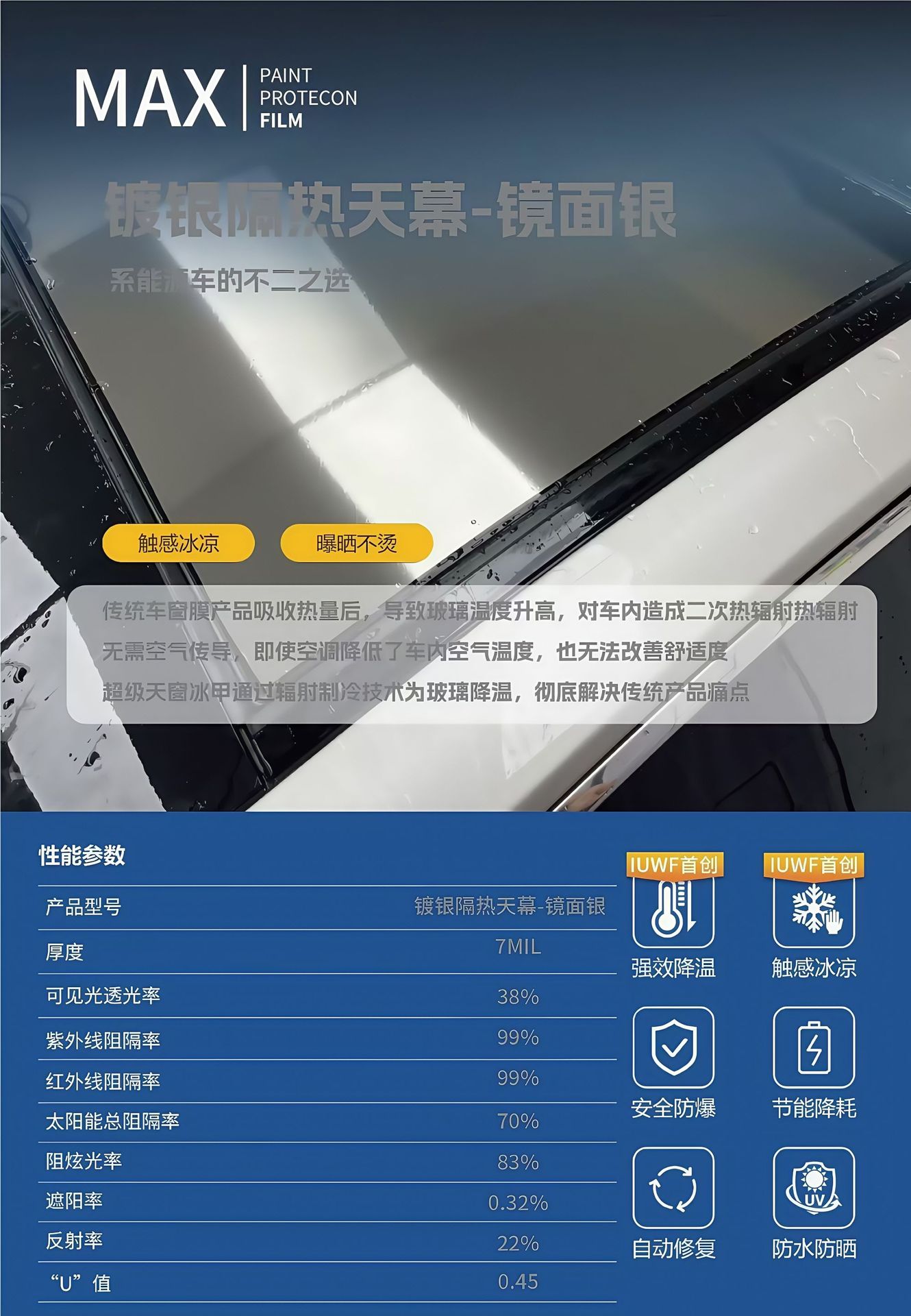 反射銀メッキキャノピーカーフィルムルーフ遮光サンルーフアイスアーマー日焼け止め断熱フィルムガラス防爆サンルーフフィルム