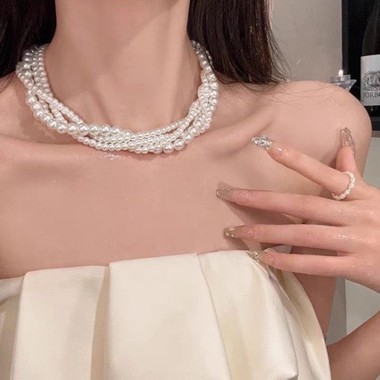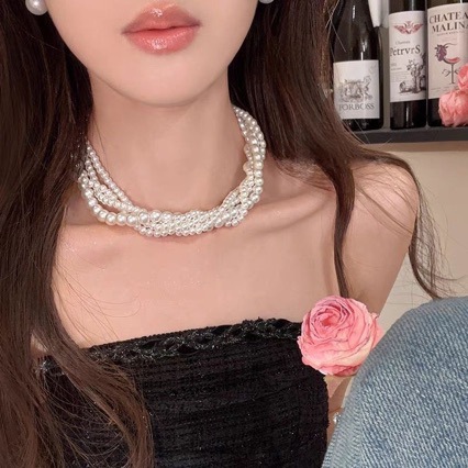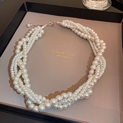 ファッション麻花は多層真珠のネックレスを巻いています。