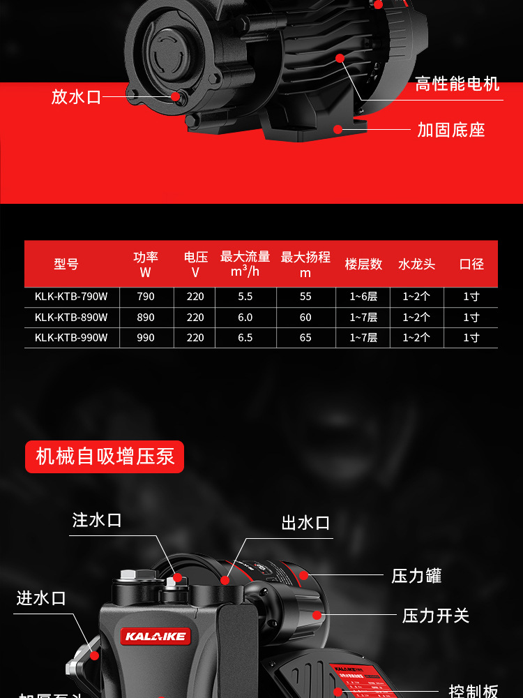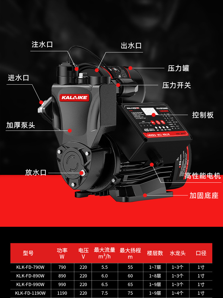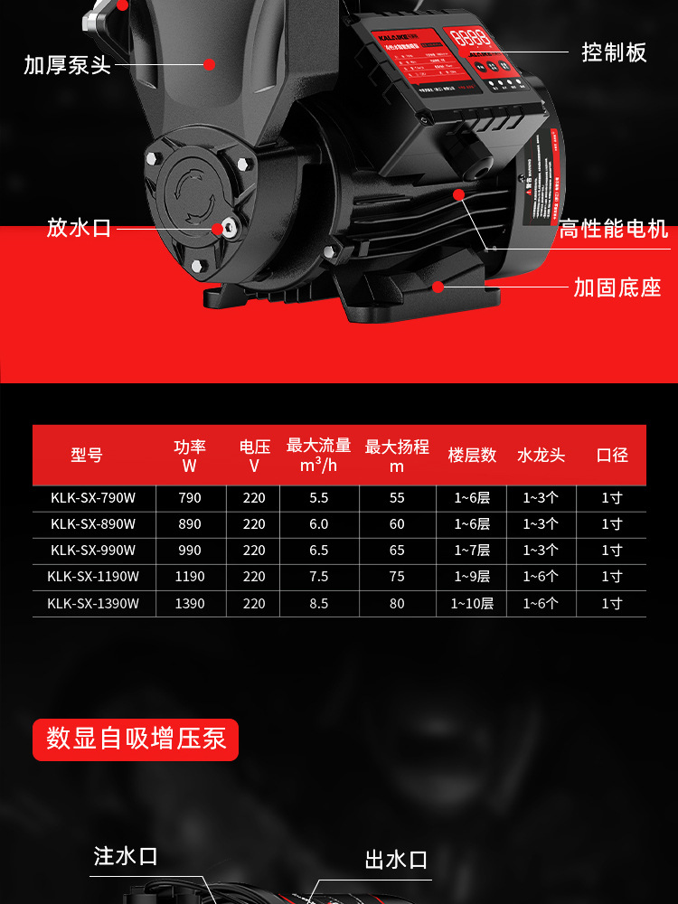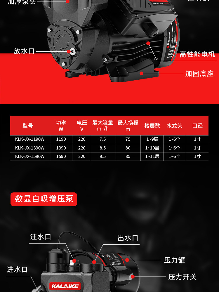 カーレク自吸スクリューポンプ家庭用ポンプ小型220v全自動加圧ポンプ井戸水ポンプ