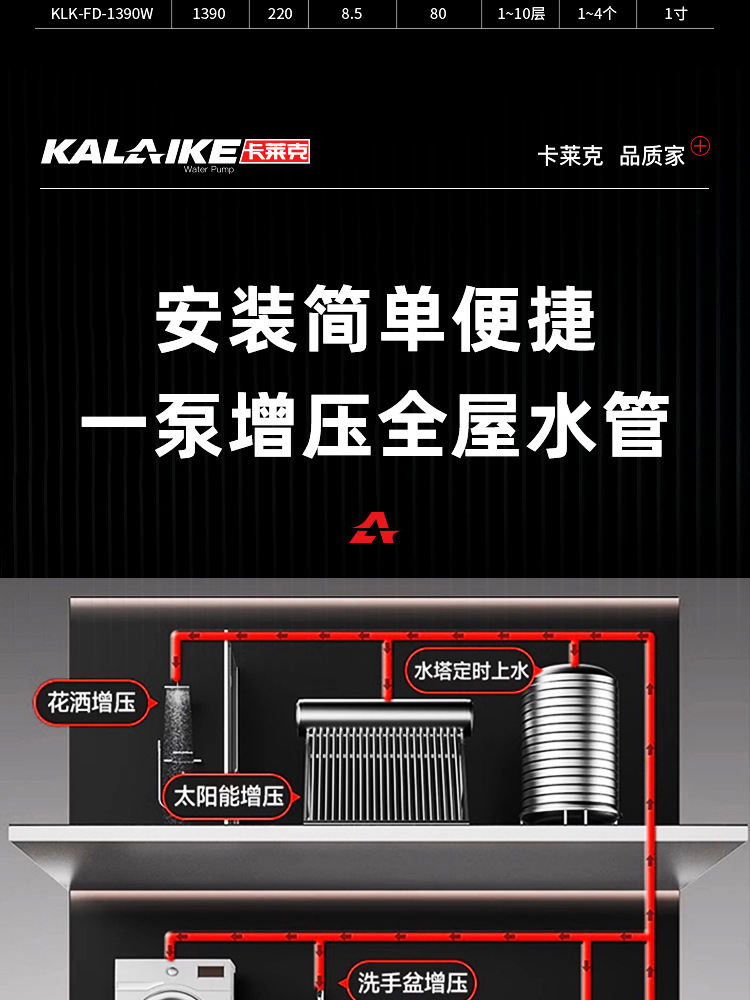 カーレック家庭用加圧ポンプ全自動太陽熱温水器水道水超静音インバータ家庭増圧器