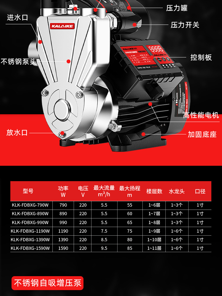 家用不锈钢全自动自来水增压泵220V高楼全屋加压泵井用抽水机水泵