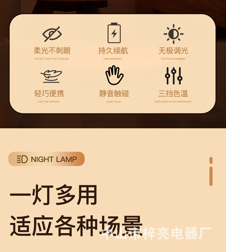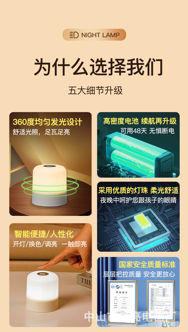 人気のタッチ式マルチカラーLEDナイトライト、ベッドサイドランプ、キャビネットランプ、目の保護用ソフトライトスリープライト