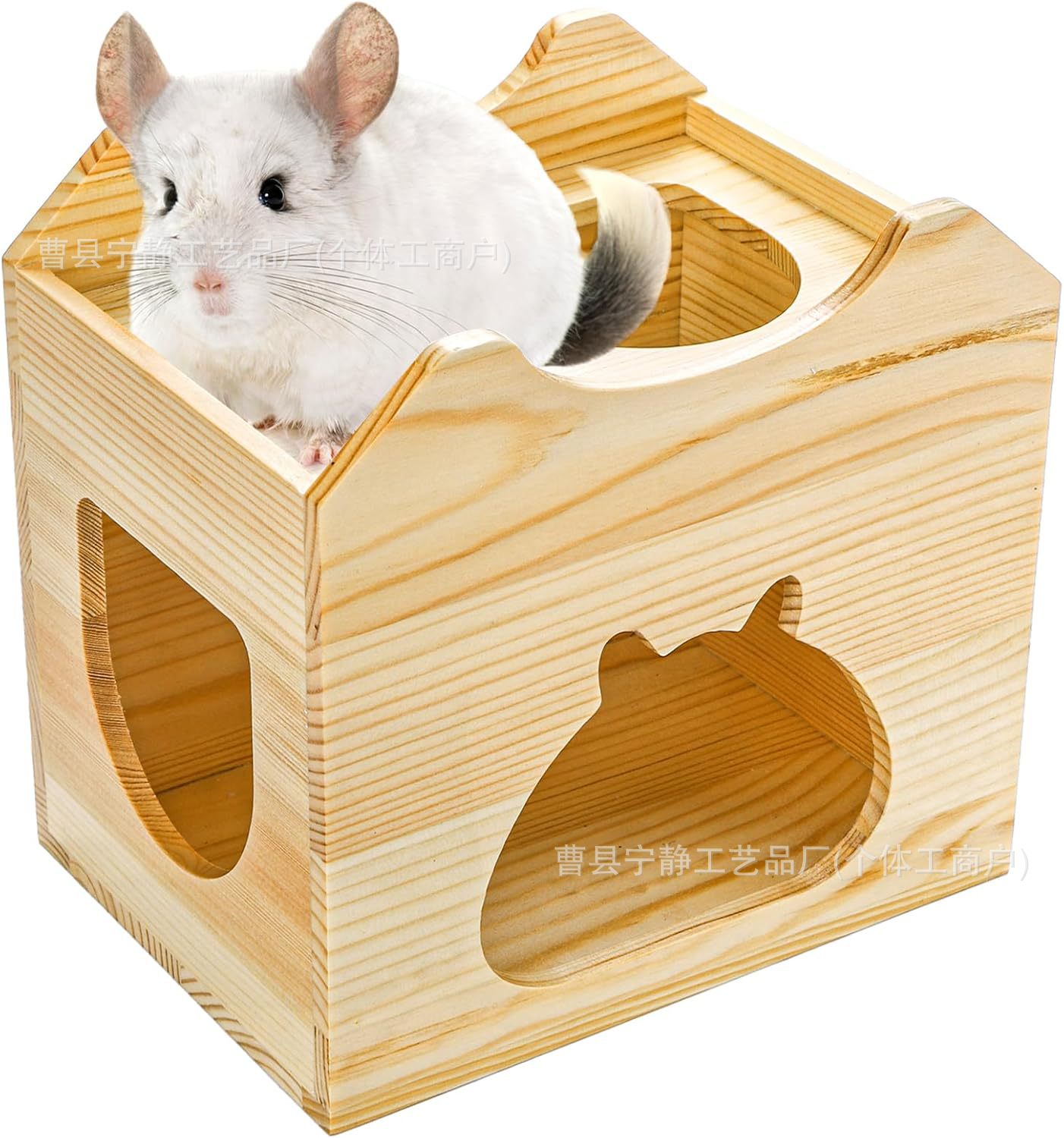 木の動物の小さいハムスターの巣の実木の2つの開口部のおもちゃは簡単です。